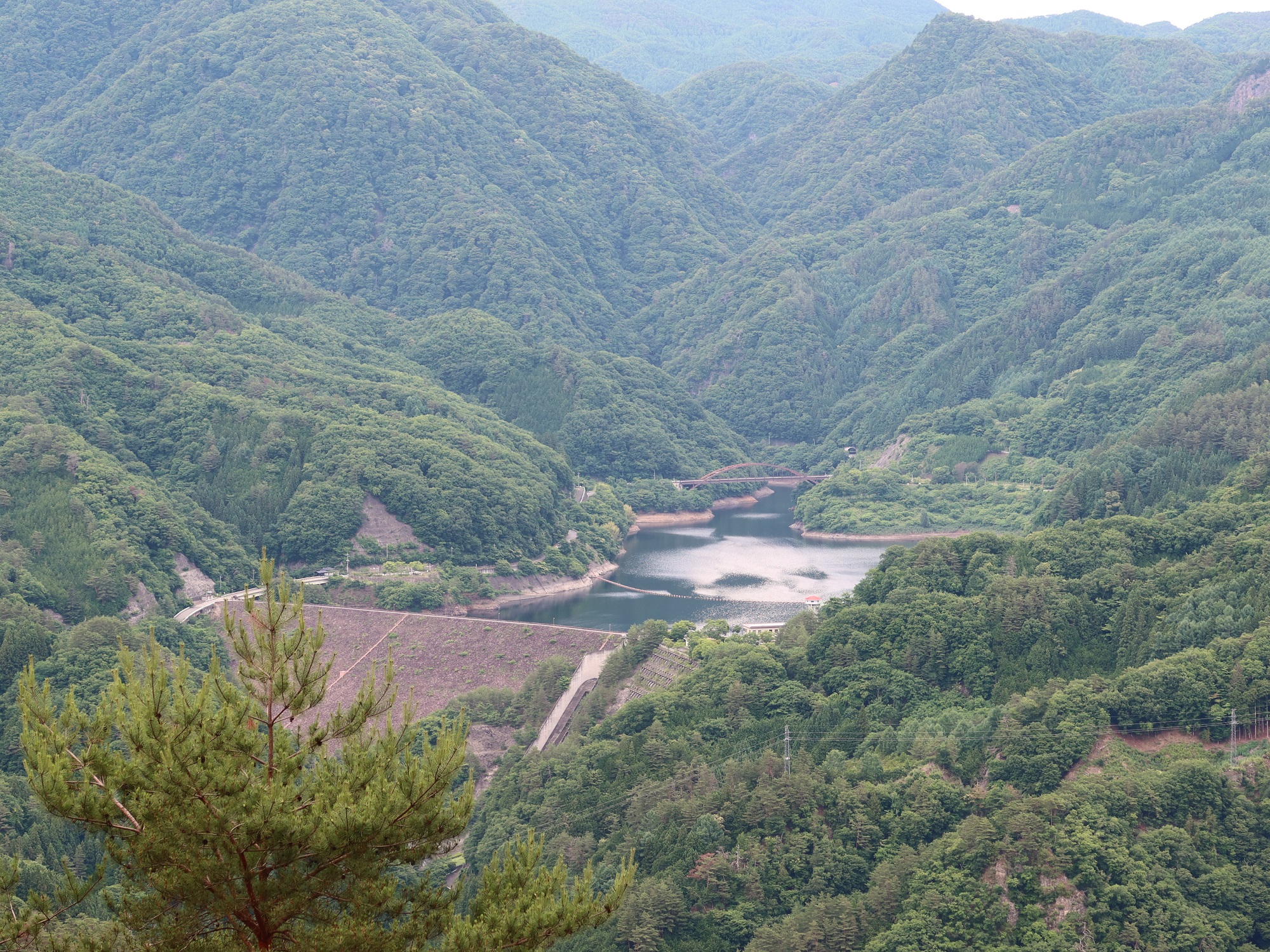 パノラマ台駅から、何やら湖が見えます。荒川ダムと能泉湖です。ちなみに、昇仙峡ロープウェイからも見えます。