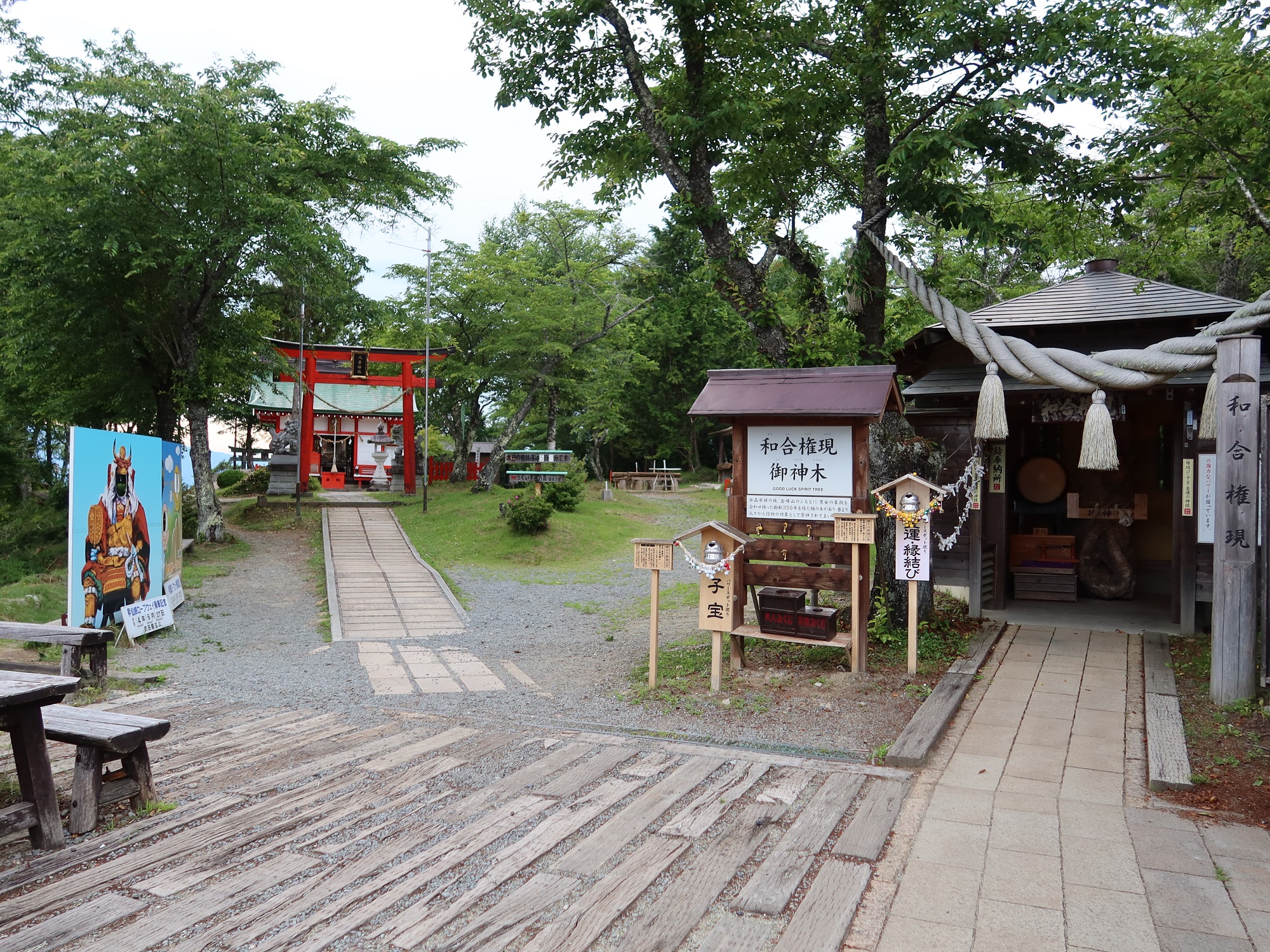 パノラマ台駅前です。奥に見える赤い鳥居は八雲神社、右手前にあるのが和合権現です。