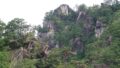 こちらが、富士山遥拝所から見える富士山です。峡谷の先に富士山っていいですね。