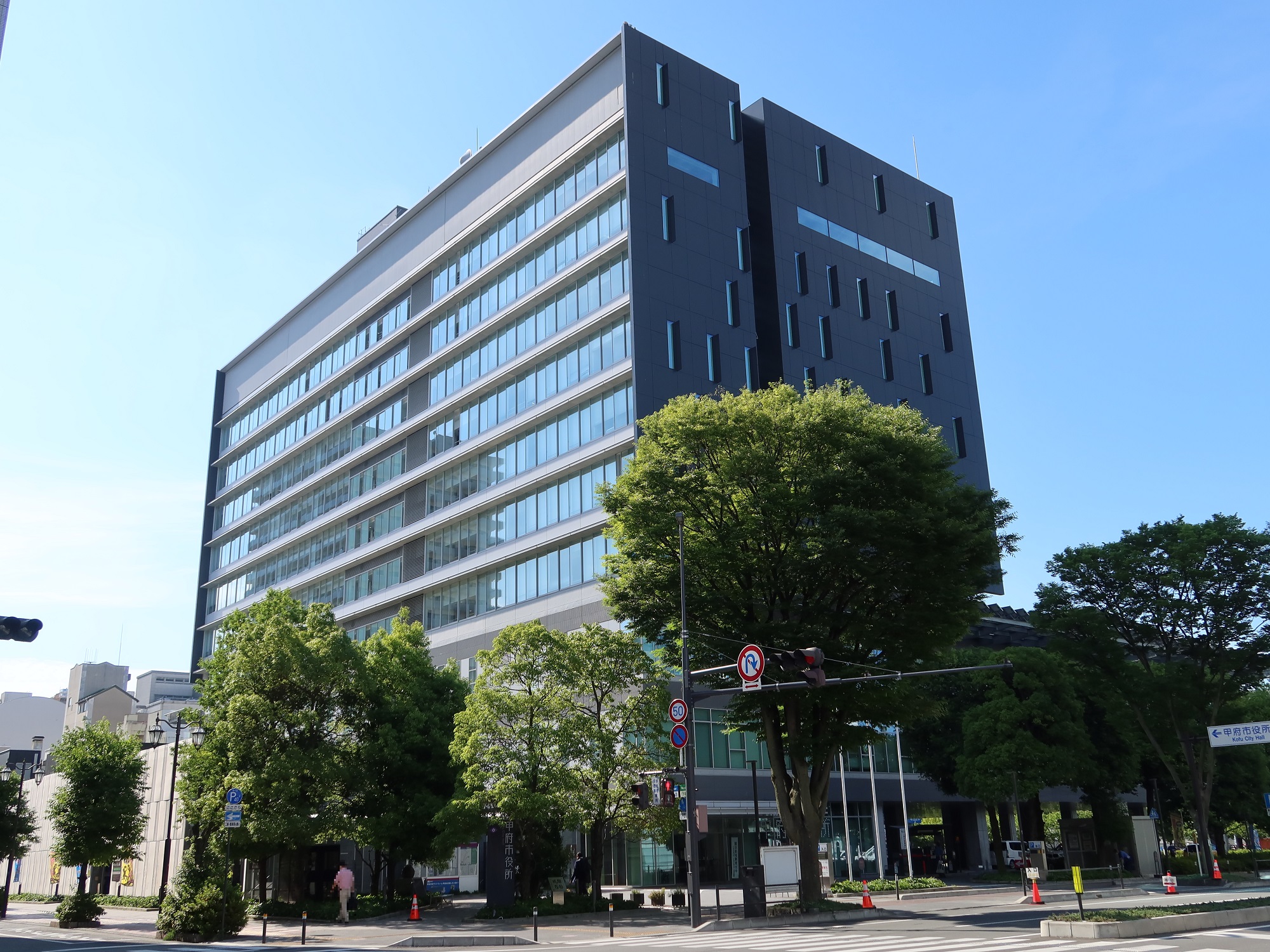 山梨県庁の南の平和通り沿いに、甲府市役所があります。