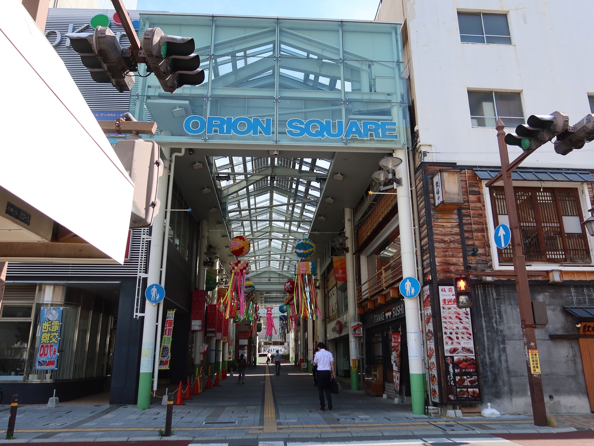 更に東に進むと、オリオンスクエアという短いアーケード街があります。麺屋甲武信さんはここにあります。