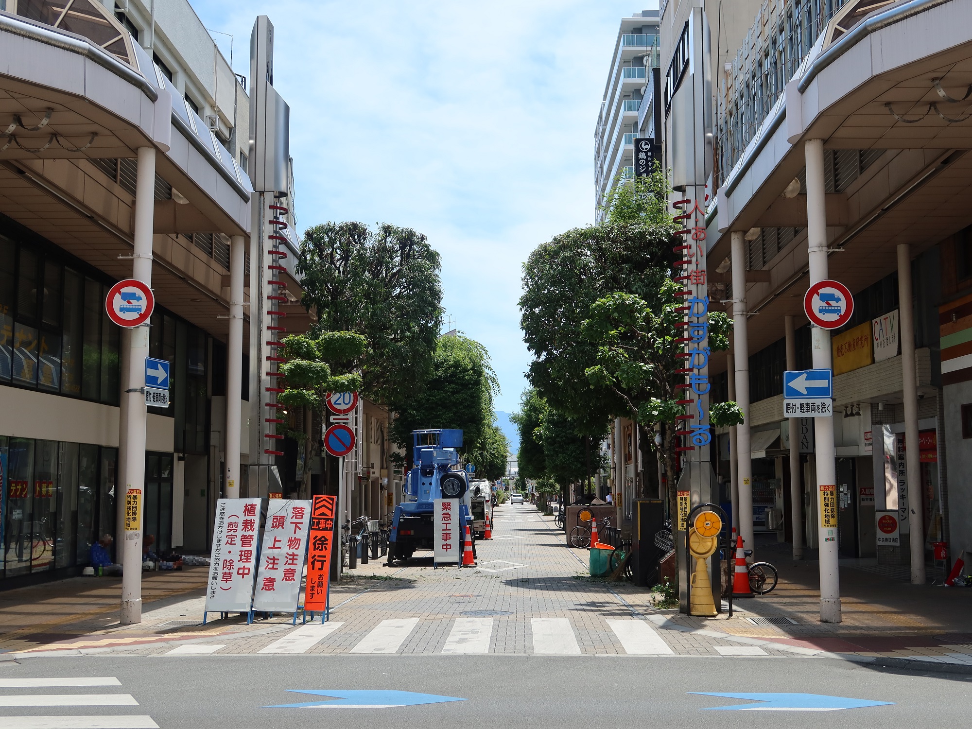 甲府市のメインストリート、平和通りです。JR甲府駅南口からまっすぐ南に延びる通りです。この周辺にも居酒屋さんや飲食店さんはありまして、ほうとう小作はここにあります。が、平和通り沿いはどちらかというと官庁街のイメージが強いです。