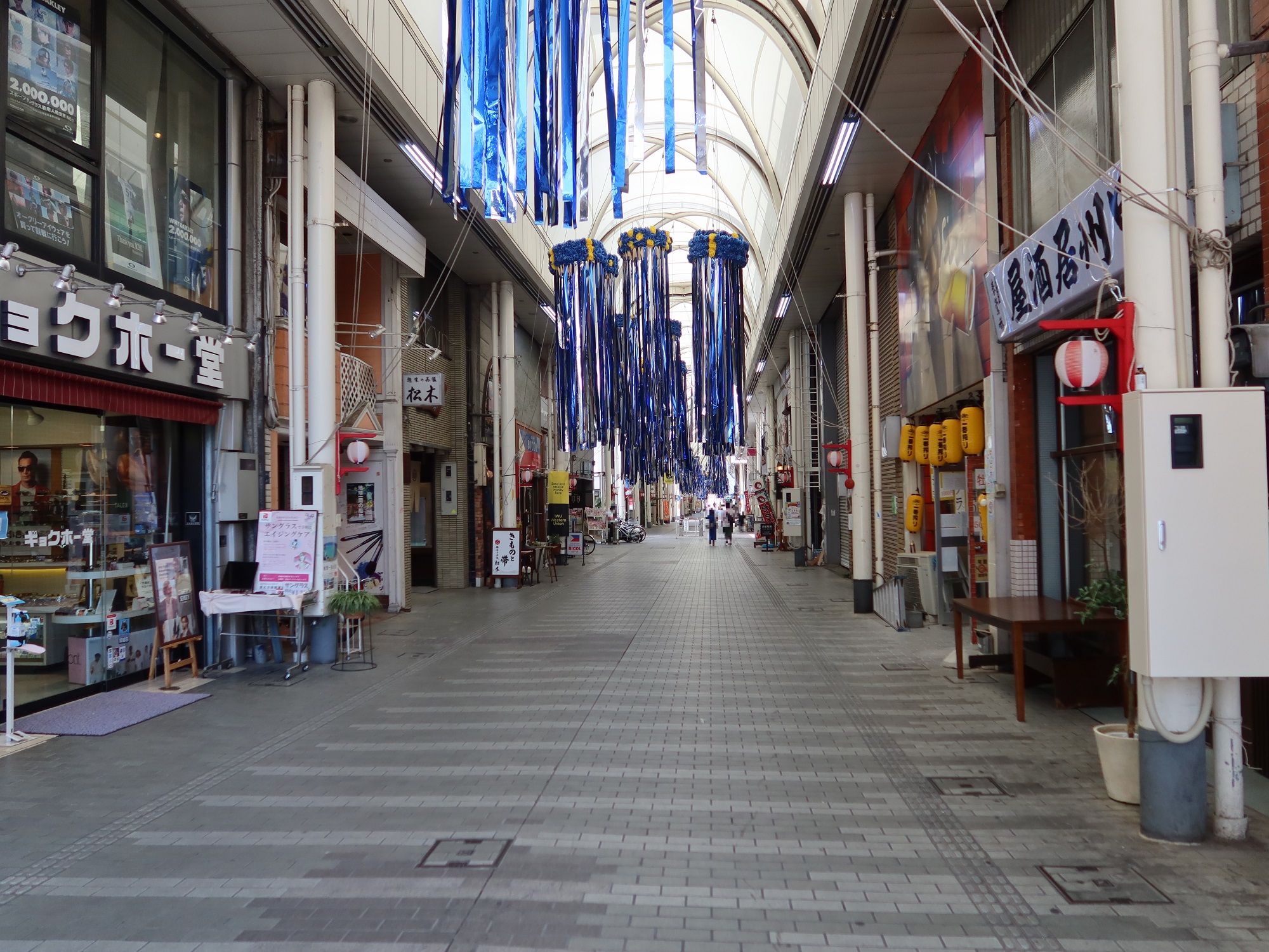 かすがも~る周辺にあるアーケード街、銀座通りです。こちらも、飲食店が多いです。