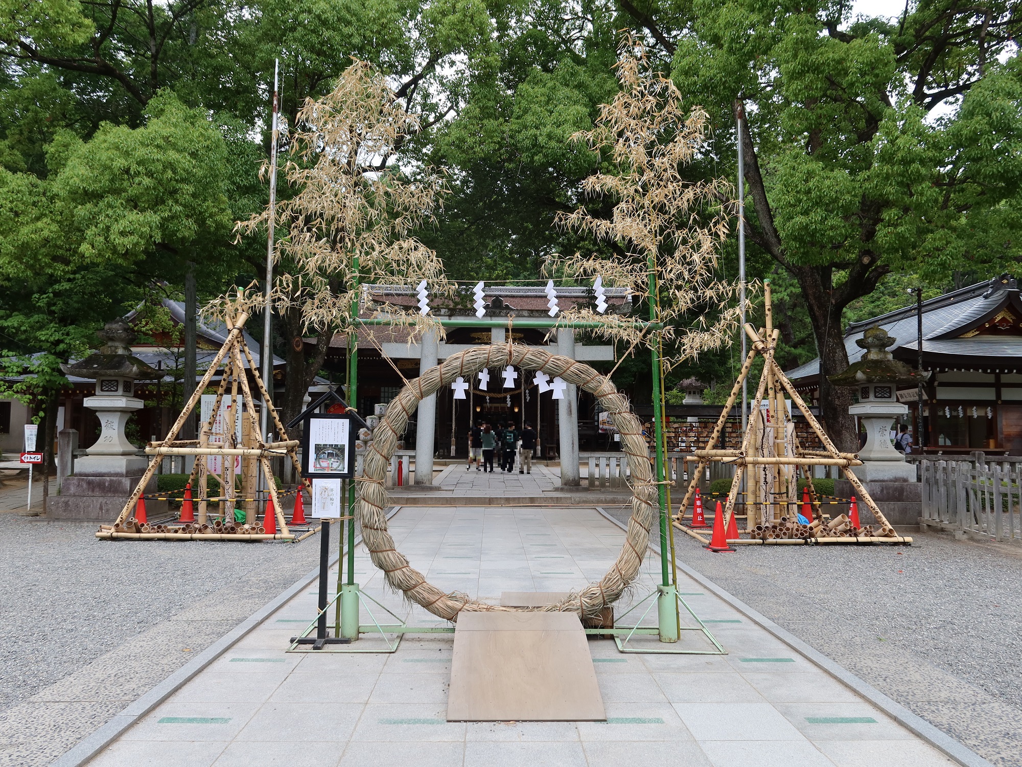 ホテルにチェックインした後、武田神社へ行きます。ちょうど夏越大袚式でして、茅の輪が設置されていました。半年間の無病息災を願って、ちゃんと茅の輪をくぐってきましたよ。