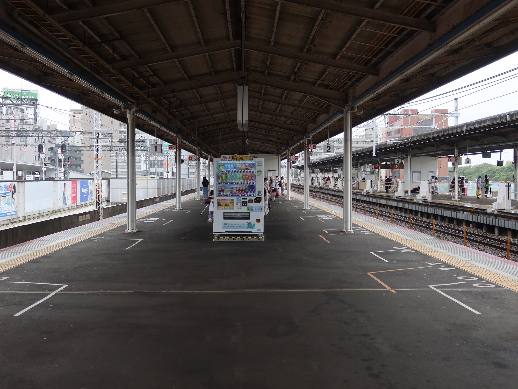 1番線・2番線は、快速と各駅停車が発着するホームです。1番線は、主に西明石・加古川・姫路方面に行く列車が発着します。2番線は、主に神戸・三宮・大阪・京都方面に行く列車が発着します。