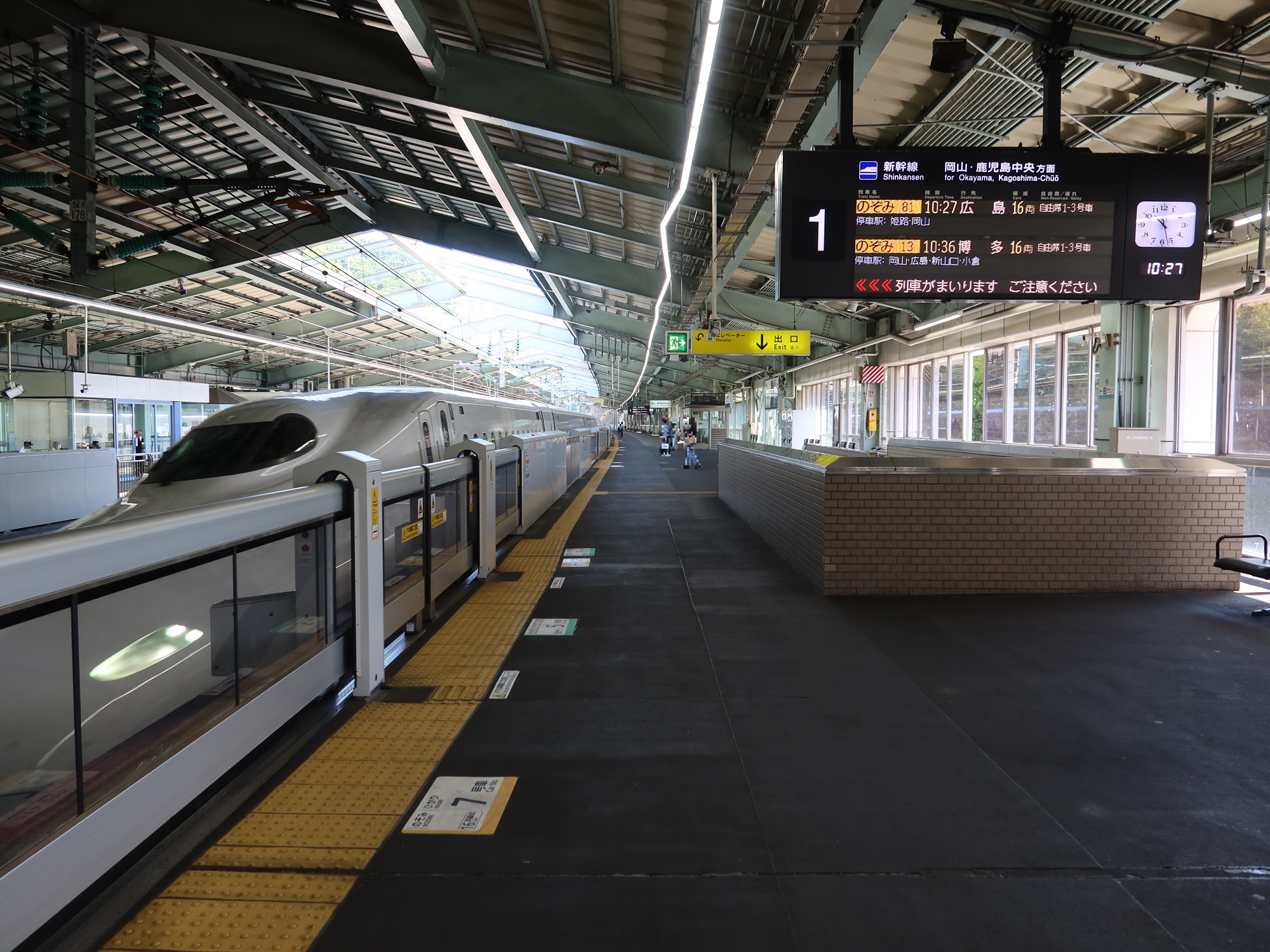 JR山陽新幹線 新神戸駅 1番線 主に姫路、岡山・広島・博多・鹿児島中央方面に行く列車が発着します