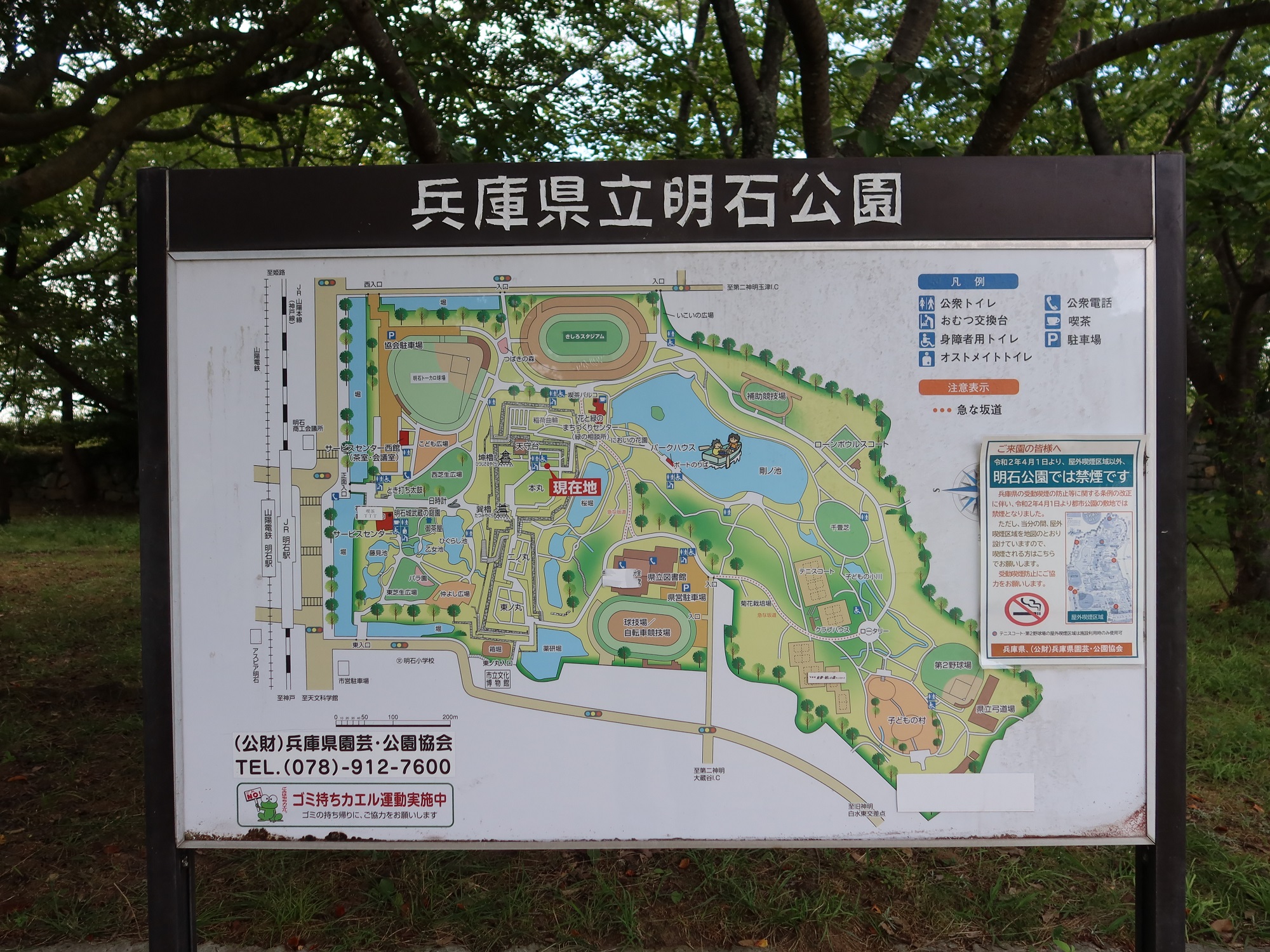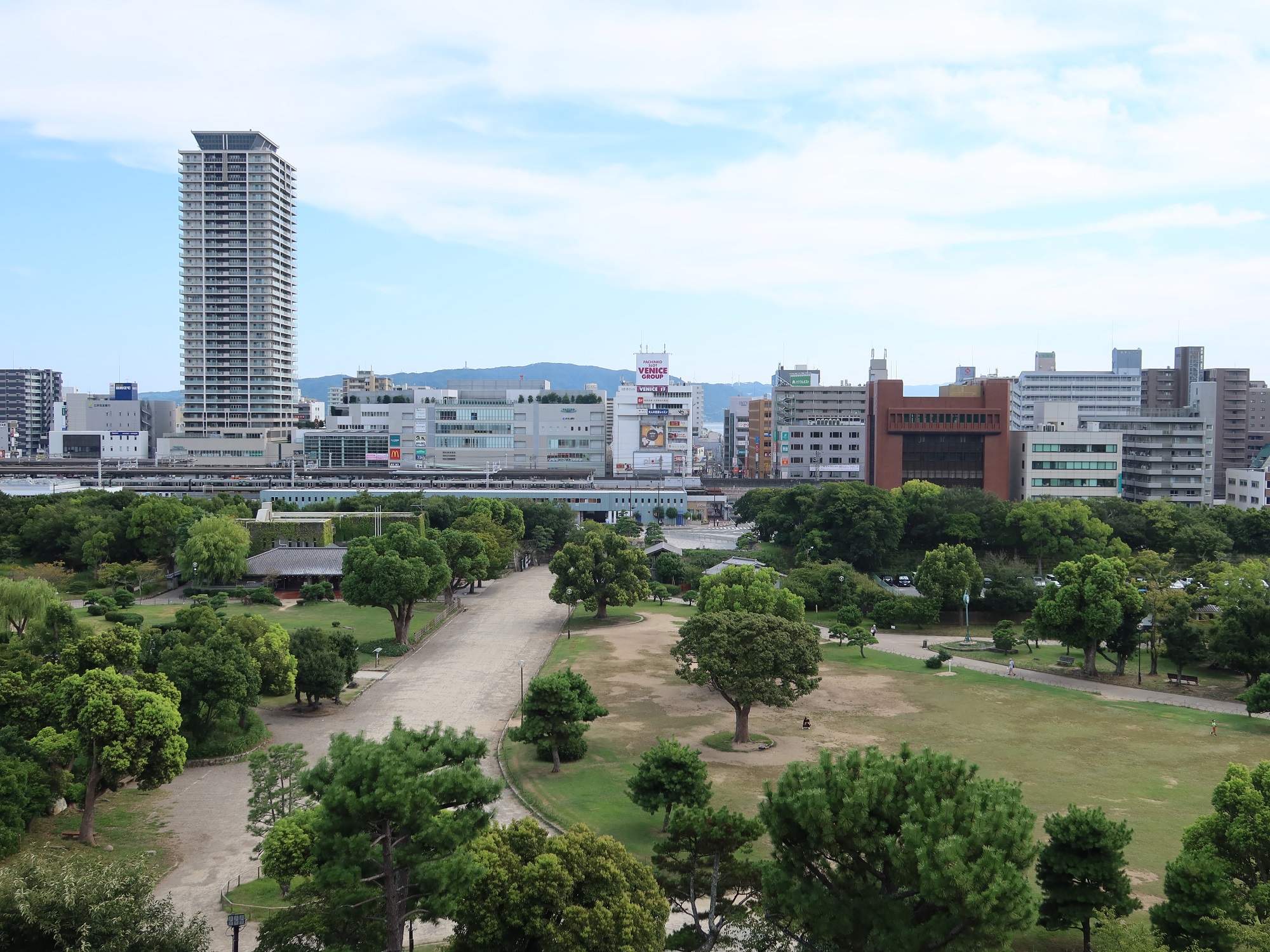 明石市の観光名所の一つ、明石城址です。明石駅のすぐ北側にあります。現在では周辺が兵庫県立明石公園になっていまして、野球場や陸上競技場などのスポーツ施設を併設する公園になっています。