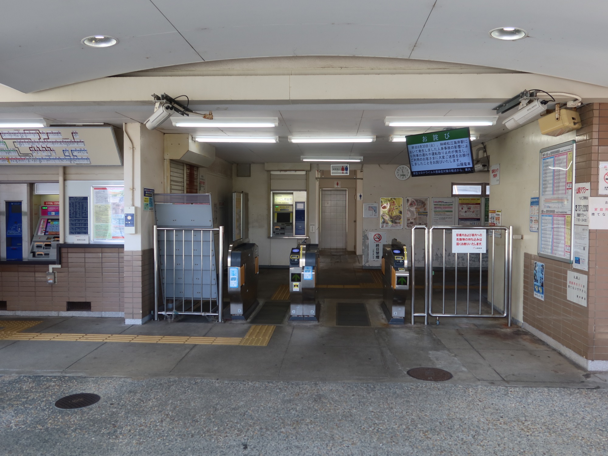 改札口です。霞ヶ丘駅は無人駅で、遠隔監視されています。(・・・て、山陽電車で普通車しか止まらない駅は大抵そうなのですが)