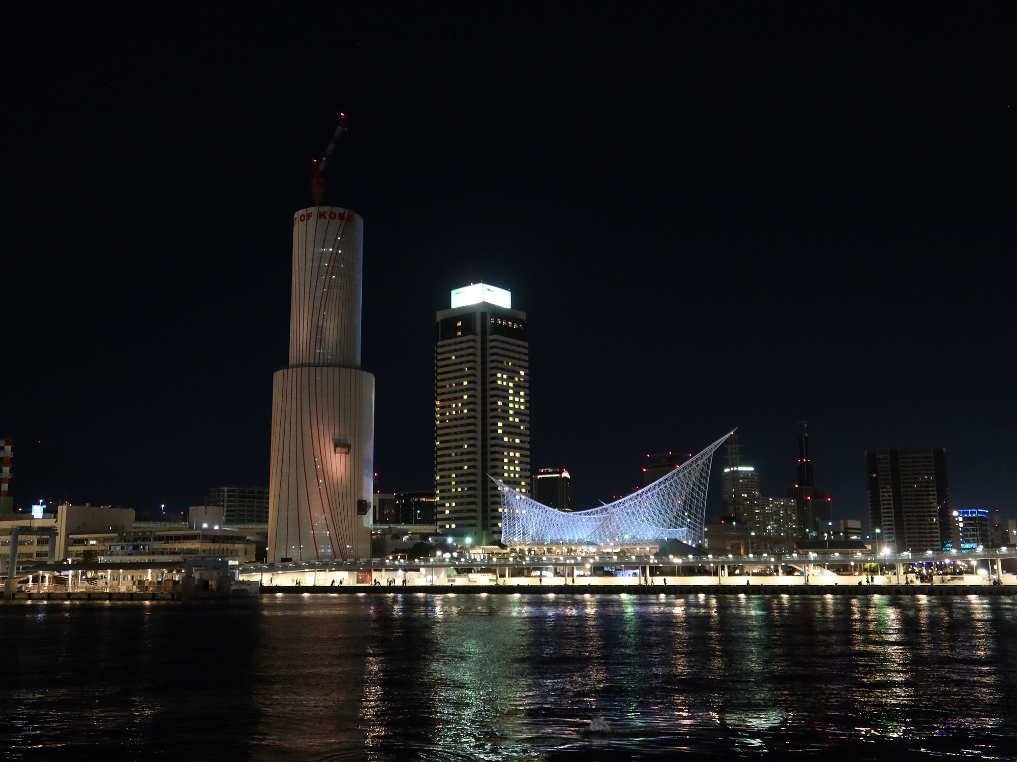 ホテルにチェックインした後、阪急神戸三宮駅から高速神戸駅に行きます。お目当てはと言いますと、神戸ハーバーランド。メリケン波止場の夜景が見たかったんです。ただ、神戸ポートタワーが工事中で、ちょっと残念。