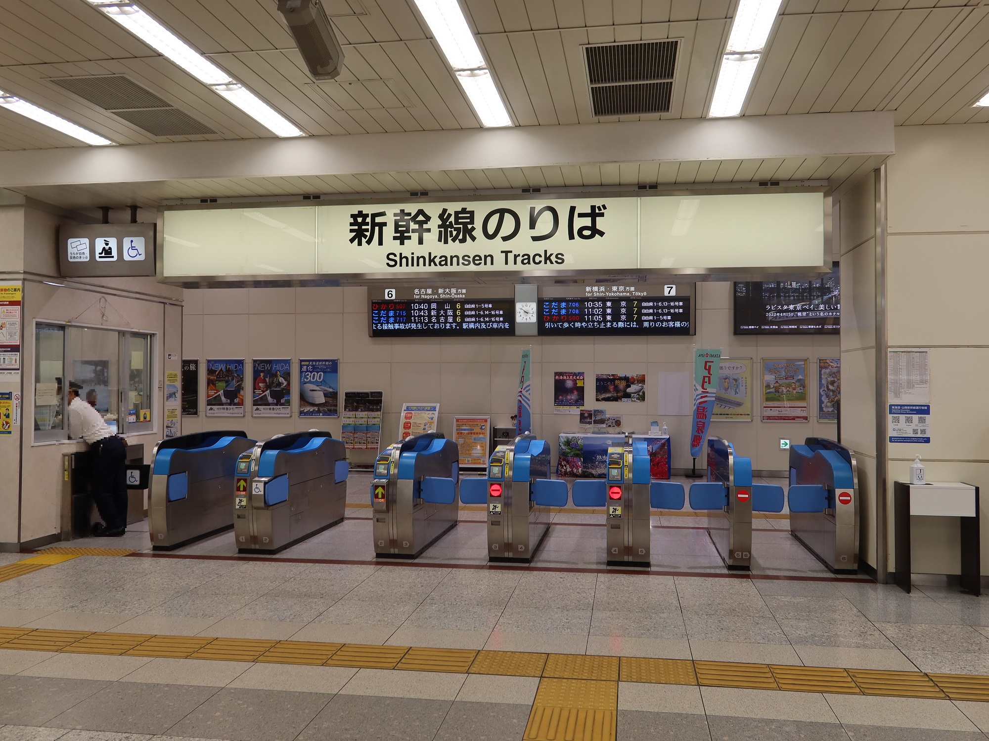新幹線乗り換え改札口です。東海道新幹線に乗る人も、後述の改札口を通ります。で、この写真の乗り換え改札口を通ります。