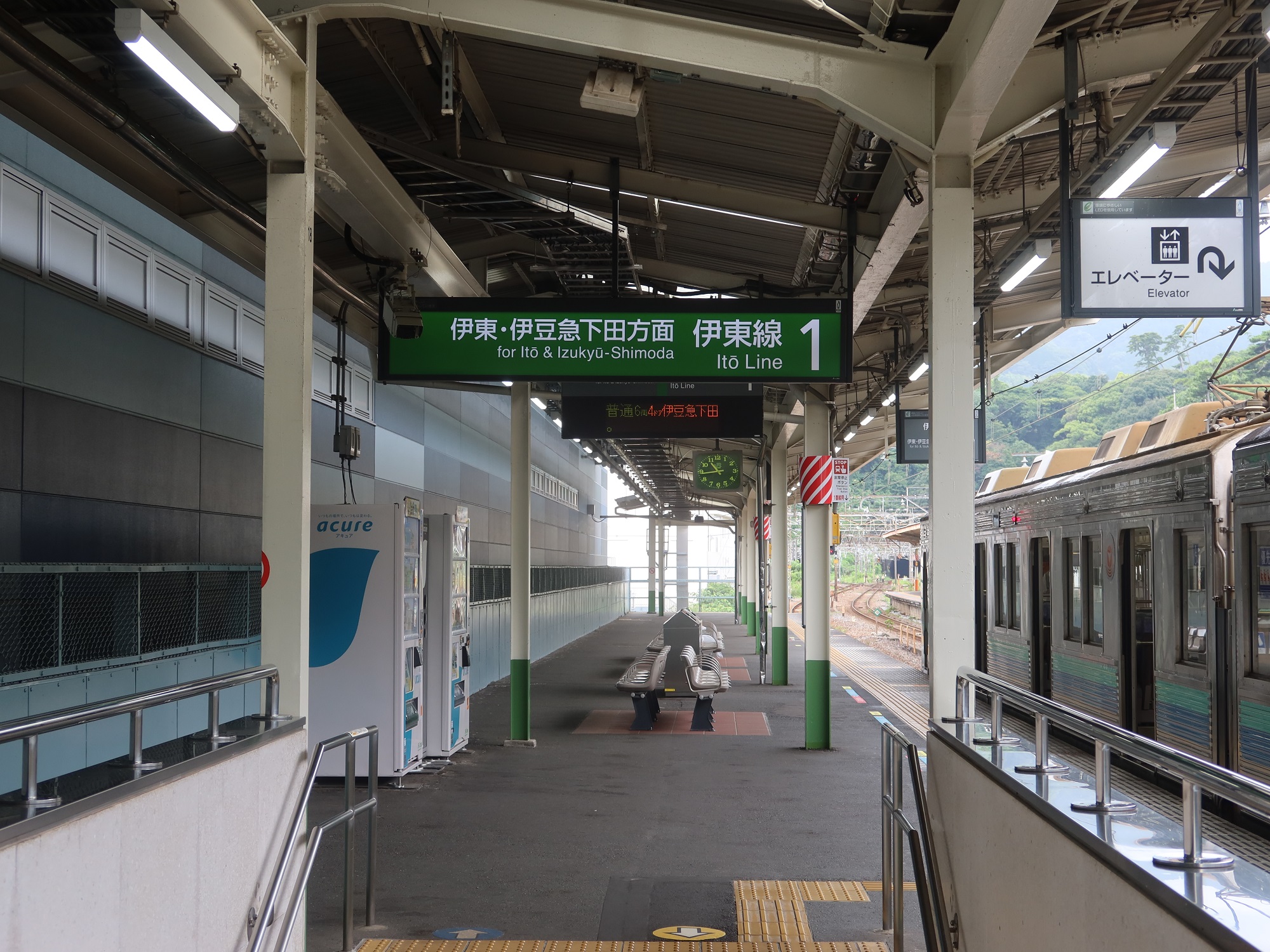 1番線です。主に伊東線で伊東駅に行く列車と、伊東駅から伊豆急行線に乗り入れて伊豆高原・伊豆熱川・伊豆急下田に行く列車が発着します。