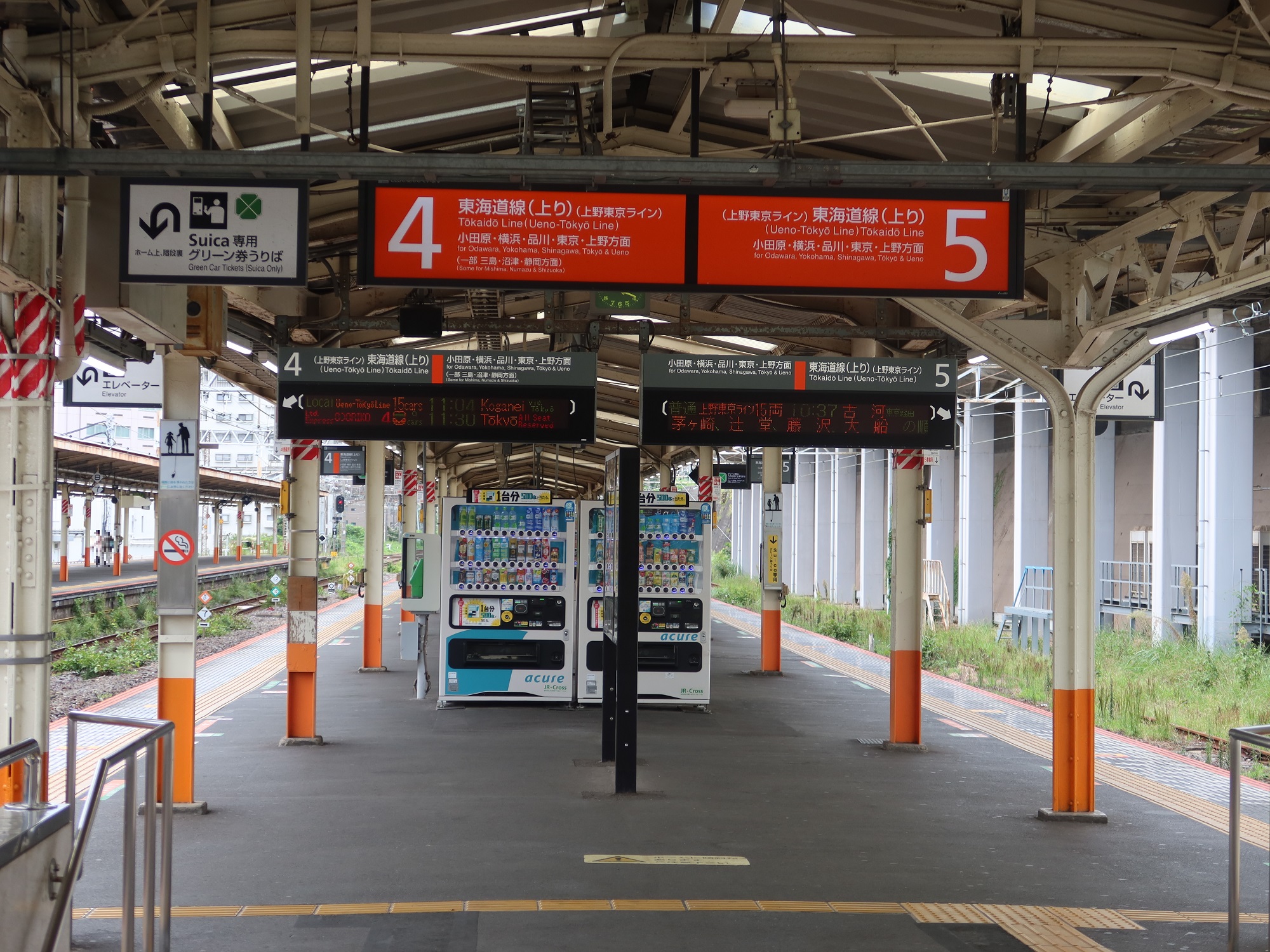 4番線・5番線です。主に東海道線で、小田原・横浜・品川・東京方面に行く列車が発着します。