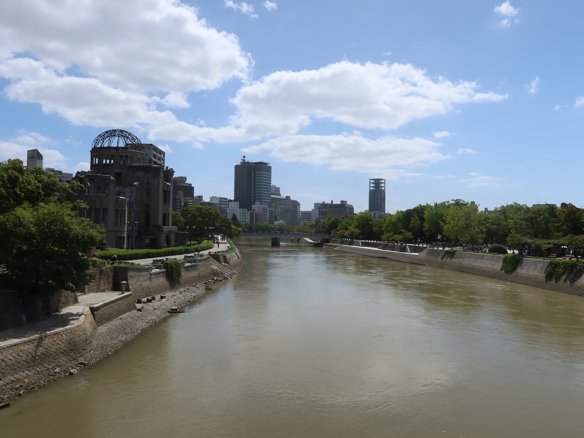 相生橋から見た、元安川です。左側が原爆ドーム、右側が平和記念公園です。