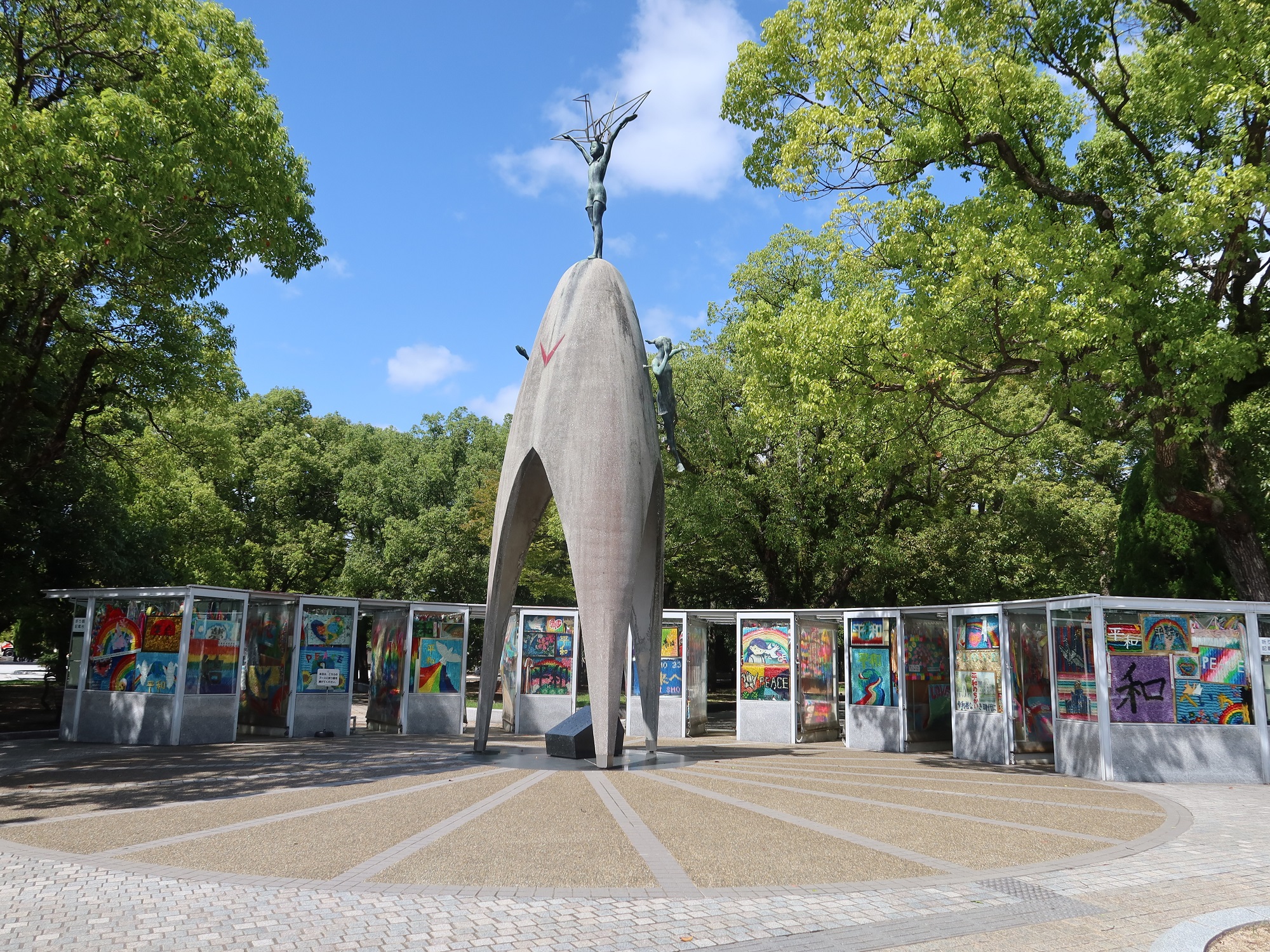 原子爆弾はこの地区の頭上で炸裂し、多くの方が亡くなりました。また、街並みも変わり果てた姿になりました。このため、この公園には核兵器と戦争のない、平和な世界を願う建造物やモニュメントが立ち並びます。