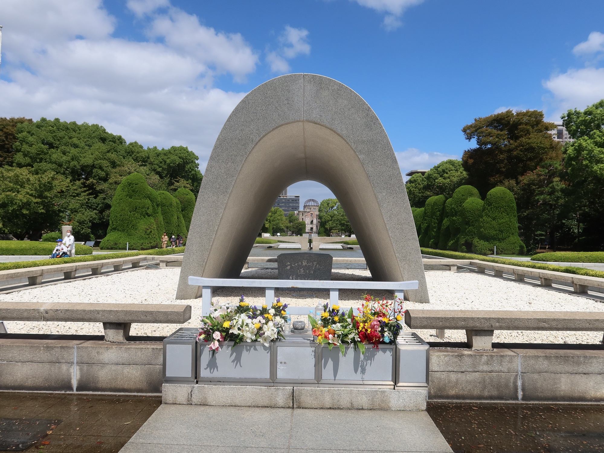 広島平和都市記念碑です。原爆死没者慰霊碑でもありまして、広島で平和式典が行われるときは必ず登場します。