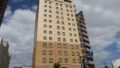 正確に言うと、原爆ドームのある場所も、平和記念公園に含まれるそうです。こちらが、相生橋から見た平和記念公園です。公園の北の位置です。平和の時計塔が見えます。