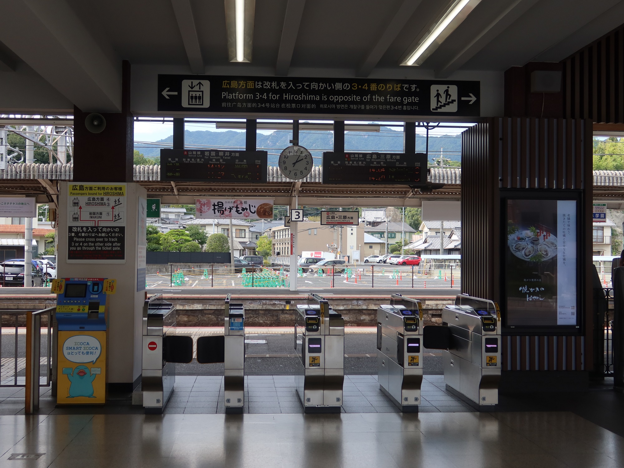 JR山陽本線 宮島口駅 改札口 ICOCA・Suica・PASMOなどの交通系ICカード対応の自動改札機が並びます