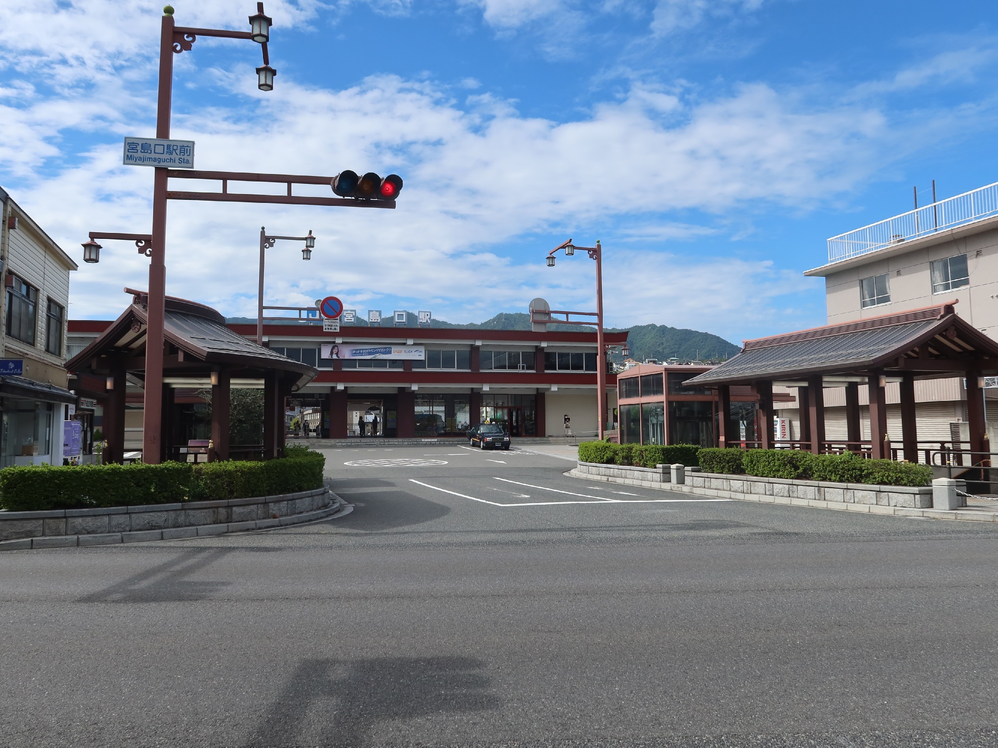 駅舎と駅前ターミナルです。宮島へは地下道を通って、宮島口旅客ターミナルからフェリーに乗ります。