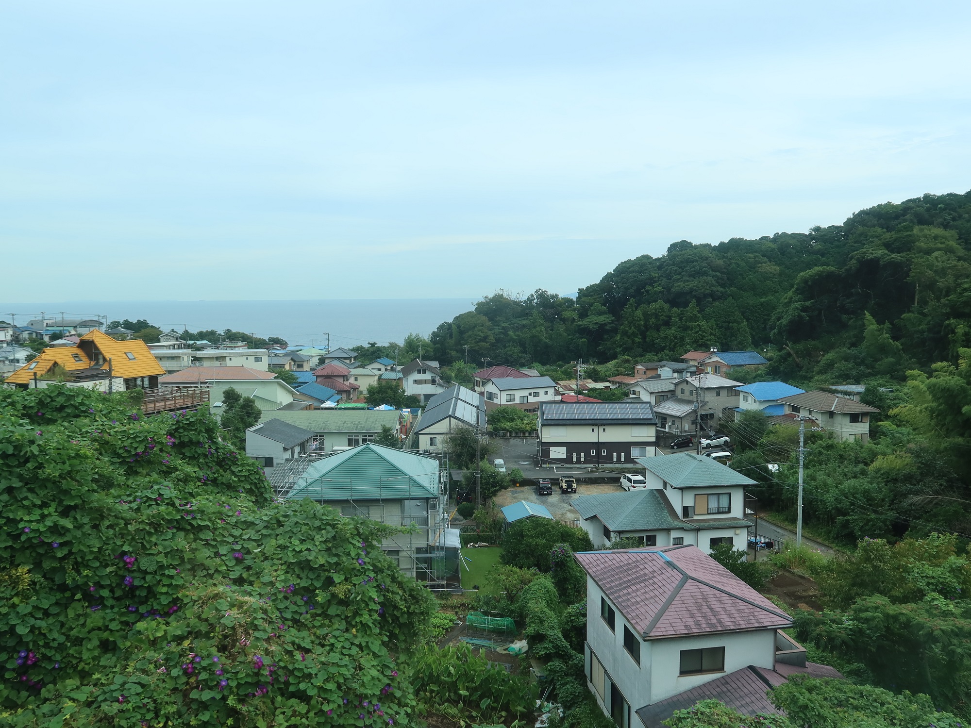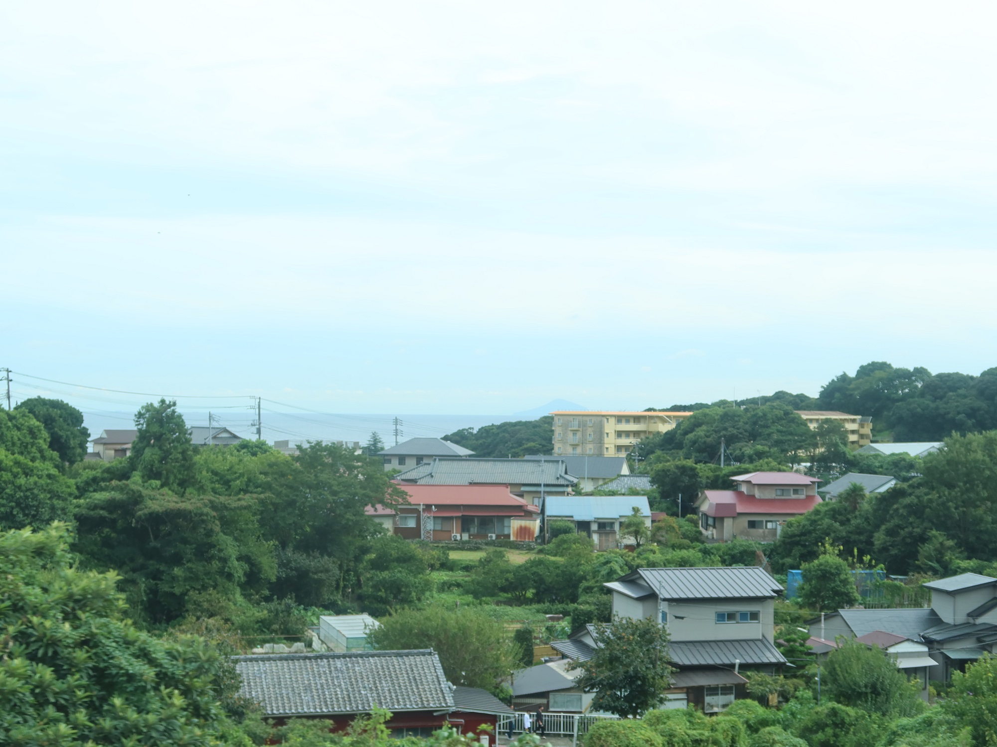 列車は伊東駅を目指して走ります。やはり伊豆高原駅の周辺は住宅の他、海が見える別荘が立ち並びます。