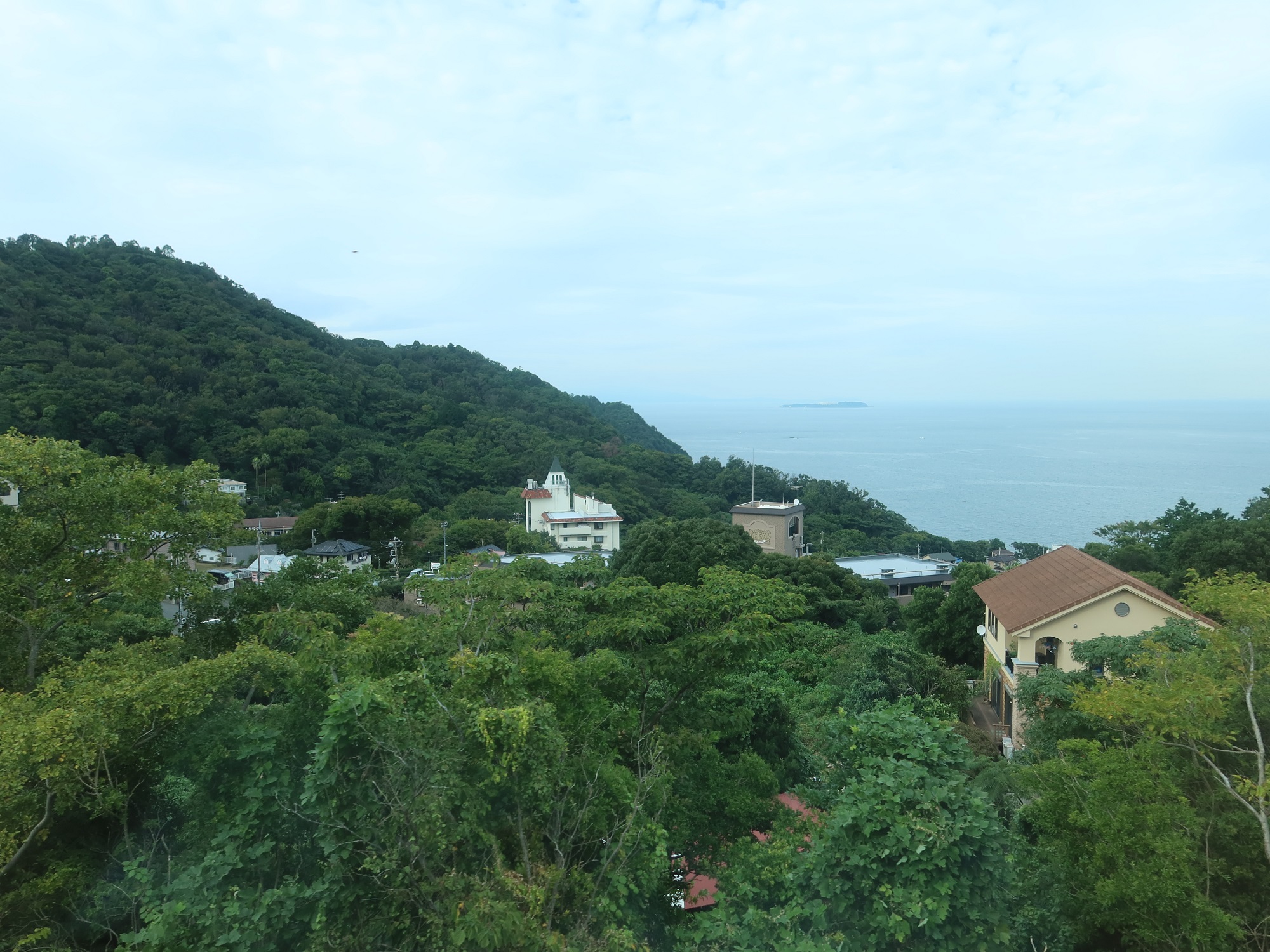 列車は伊東駅を目指します。うっそうと茂った森の先に、海岸線が見えます。