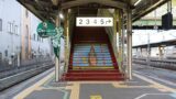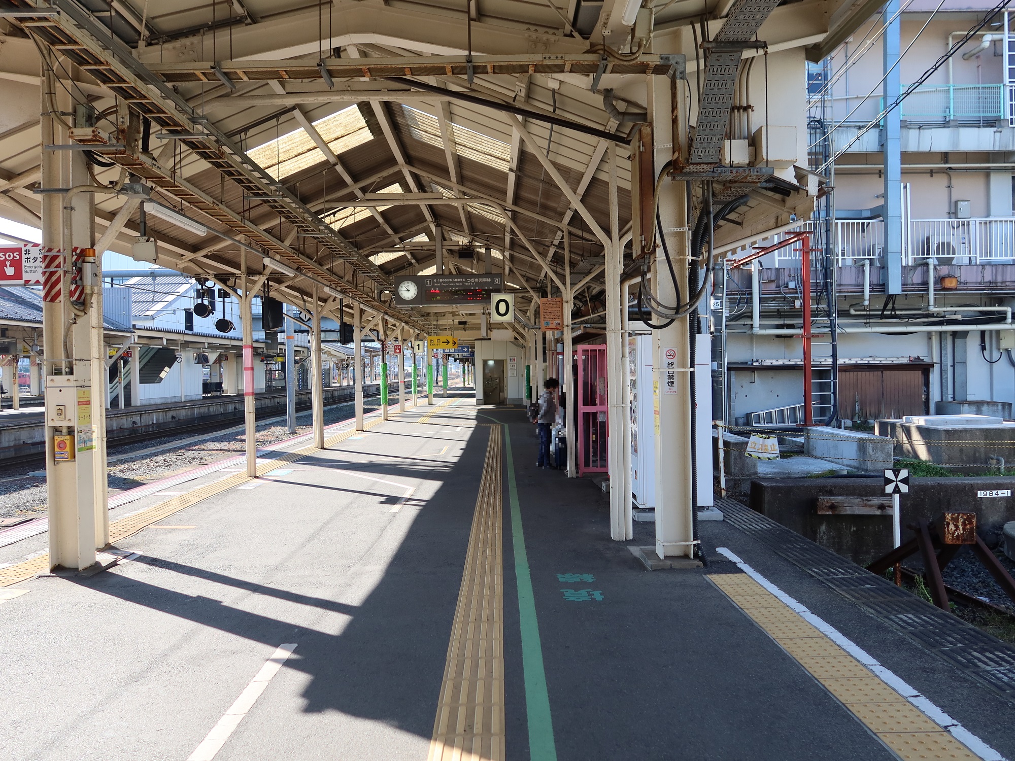 0番線の乗り場は、1番線の端にあります。ねずみ男の階段の先に、乗り場があります。