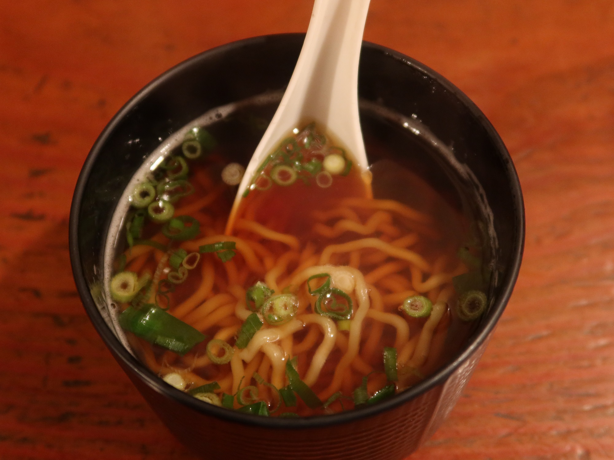まず、分量が少なすぎる。写真だと大きさがわかりにくいかも知れませんが、およそ小さめのお椀ぐらいの大きさしかありません。また、麺が柔らかすぎる。まさか、麺を茹でた後で放置してたんじゃないかと思うぐらいでした。