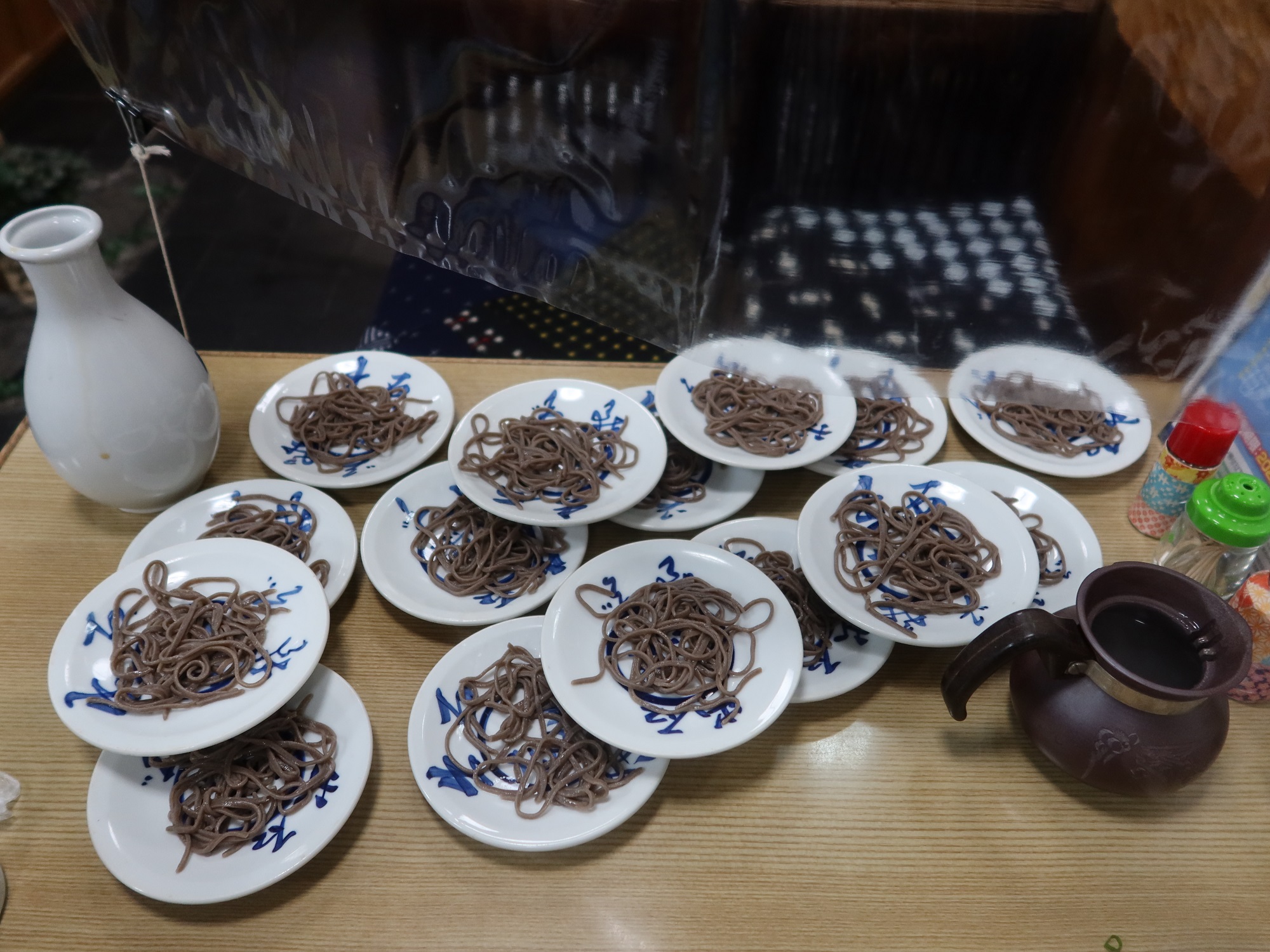 ・・・と言われましたが確かに。これだったら30皿はいけそうな感じでした。ただし、この後のバスの時刻の関係で、15皿にしました。腰が強くて、とってもうまいお蕎麦でした。今度は最初から30皿頼みたいと思います。