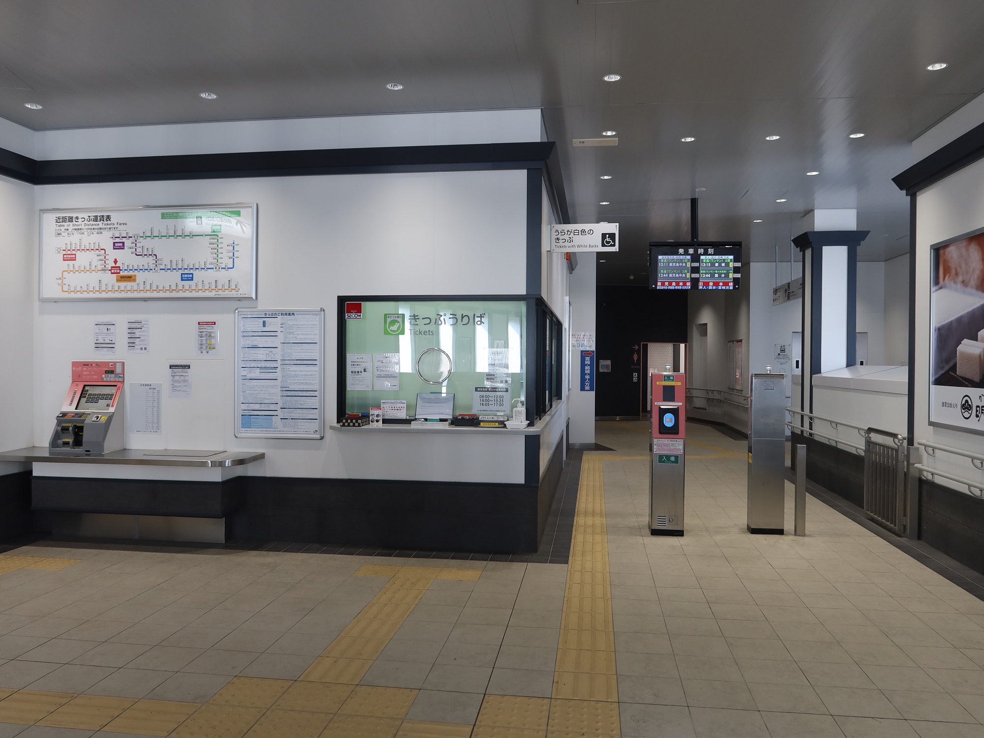 駅舎2階です。改札口にはSUGOCA、Suica、PASMOなどの交通系ICカードリーダーが設置され、自動券売機もあります・・・が、なんと無人駅です。