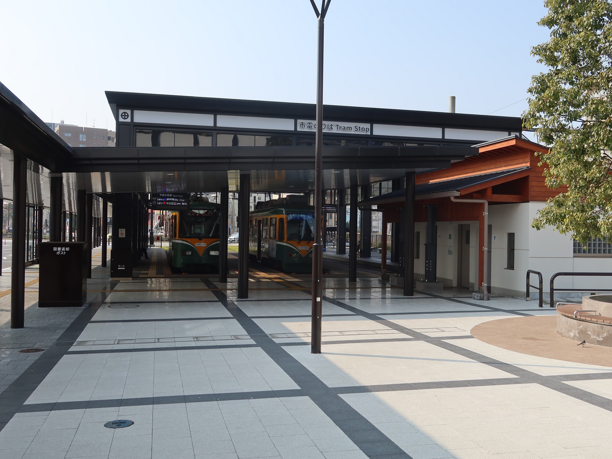 電停と言ってもかなり立派で、電停全体を覆う屋根が付いています。こちらも近年建て替えられたみたいです。