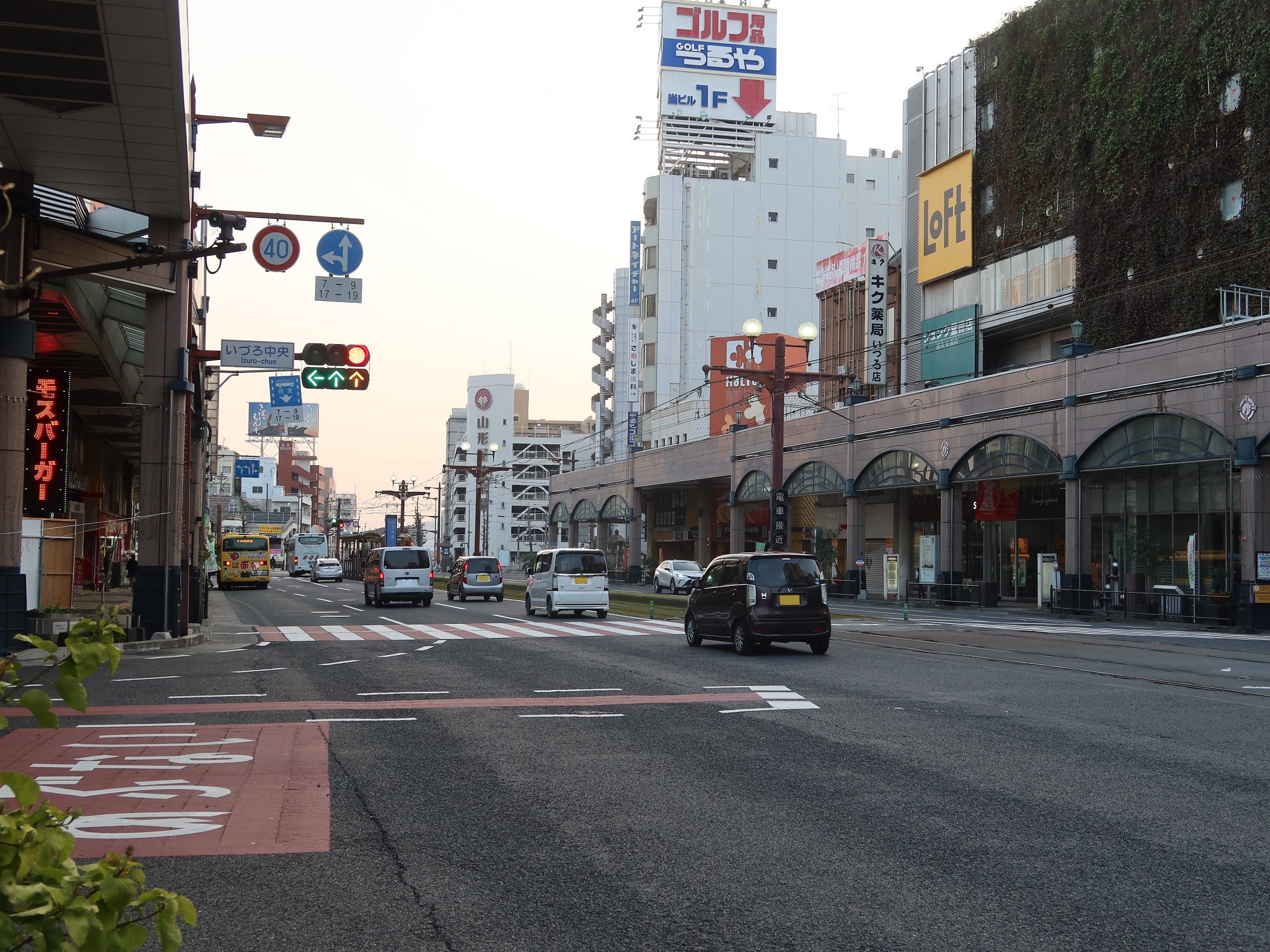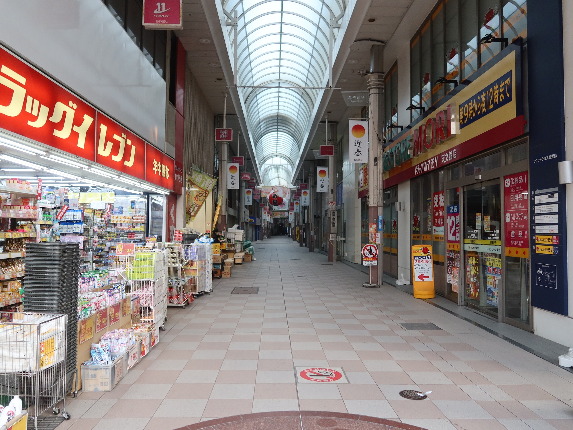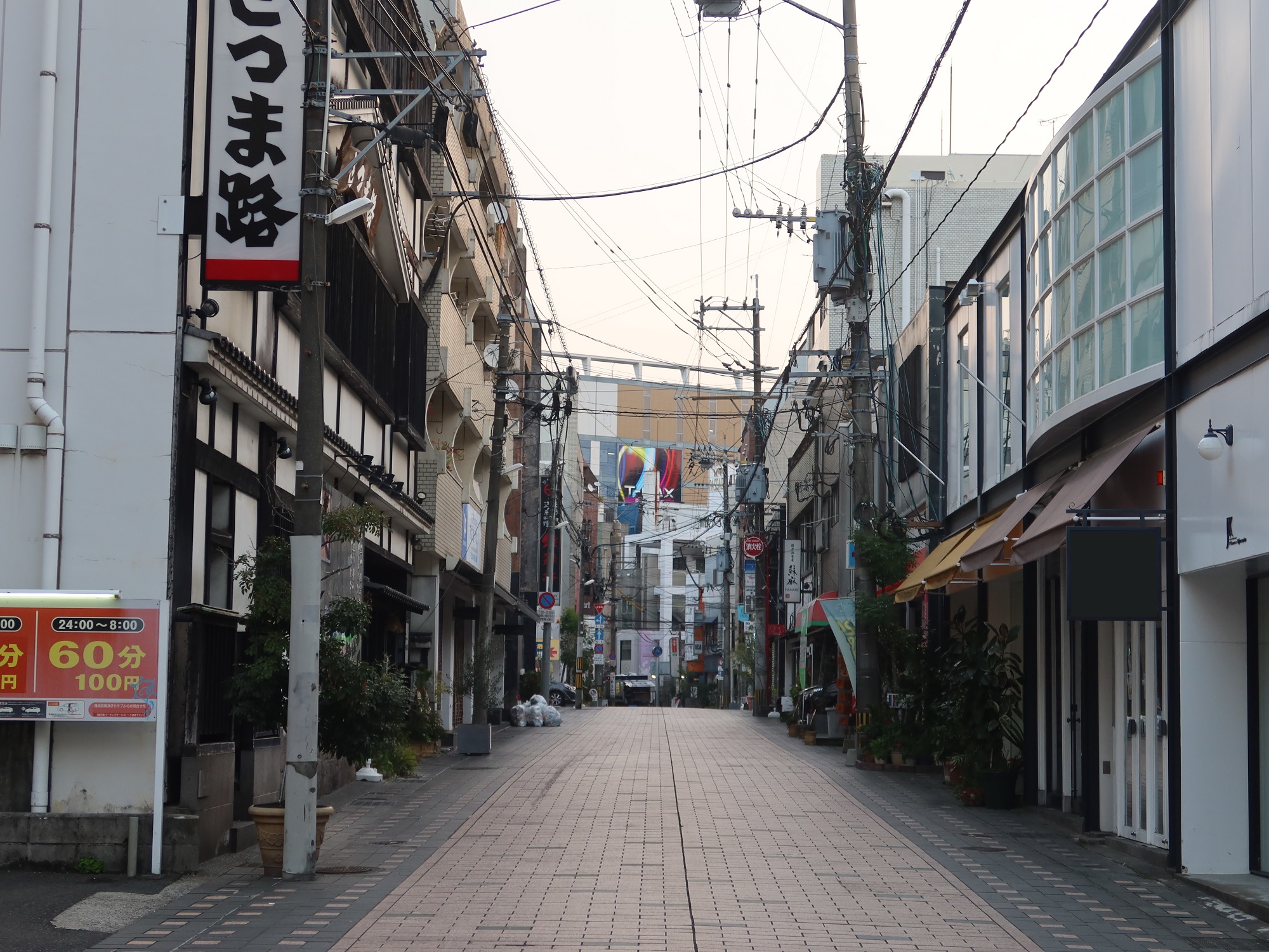 注:人通りが少ない、朝の時間帯に撮影しました。このため、ほとんどのお店のシャッターが閉まっています。