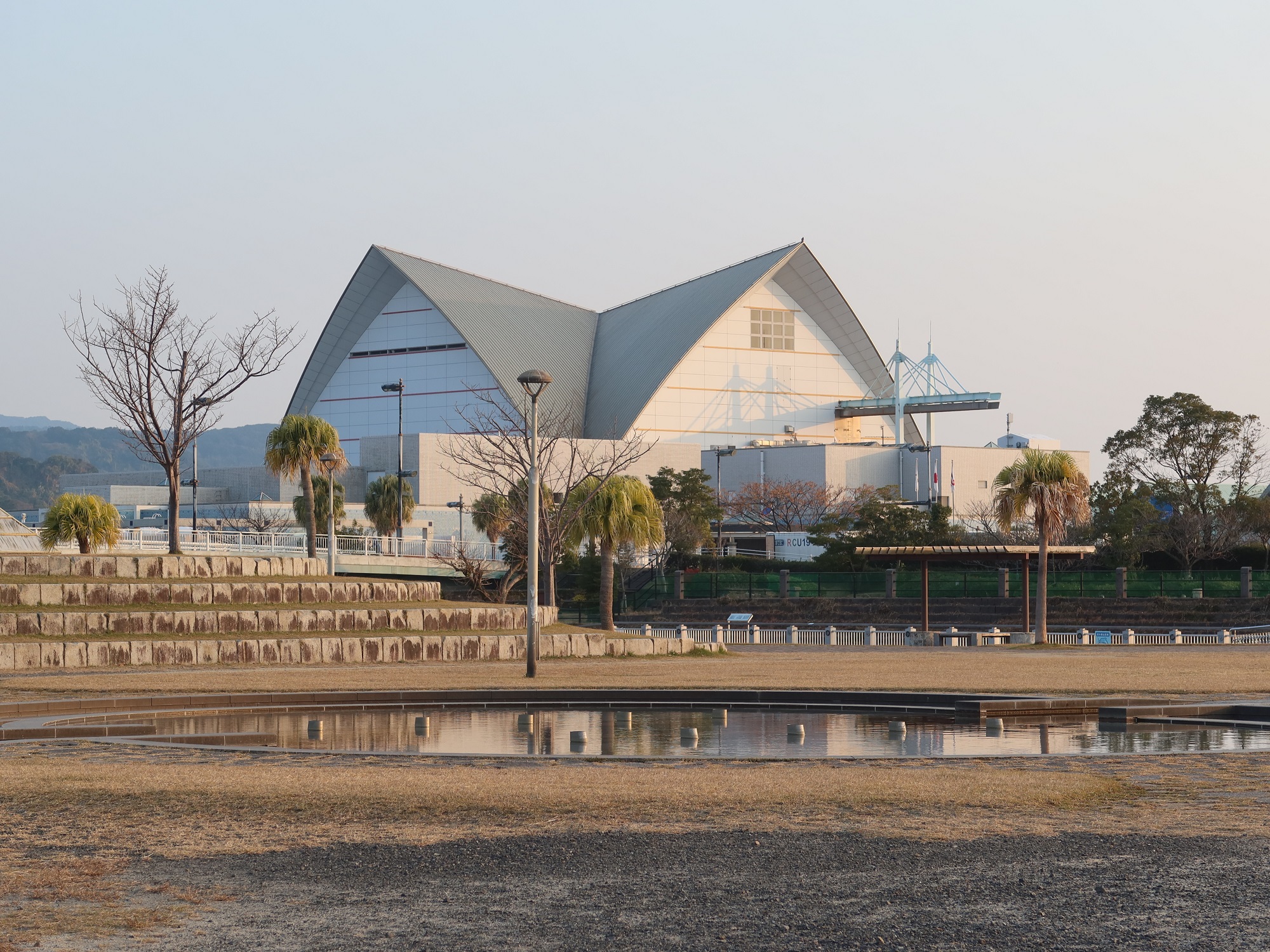 鹿児島 朝のウォーターフロントパークから見えるかごしま水族館
