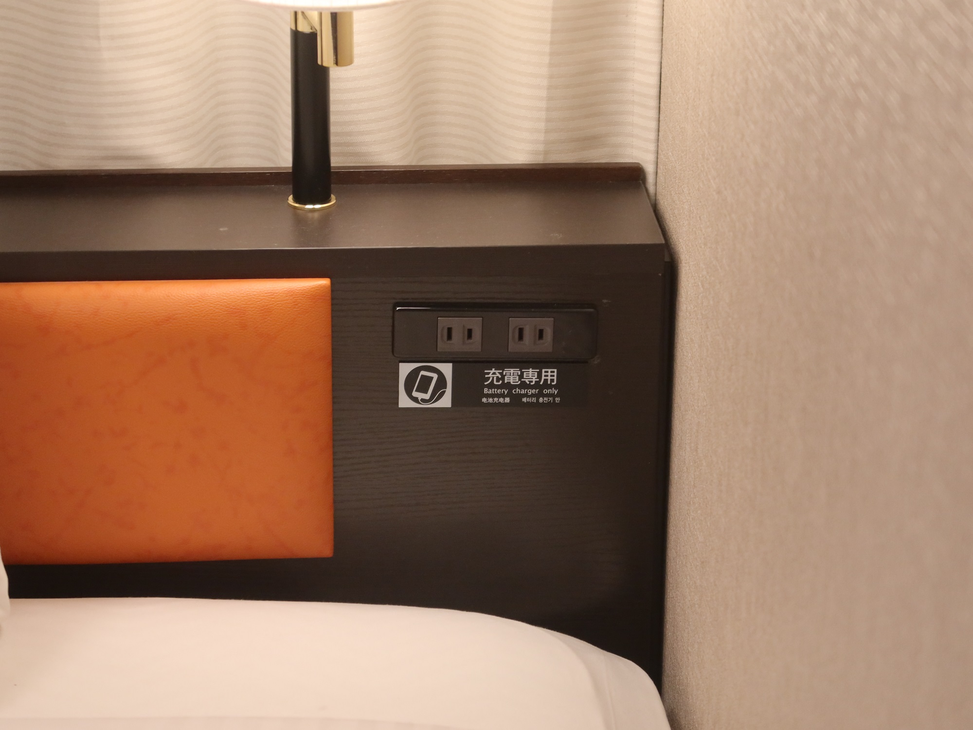 もう一方の枕元にも、ACコンセントがあります。このお部屋はACコンセントがいっぱいありまして、キューティー吉本的には嬉しいです。