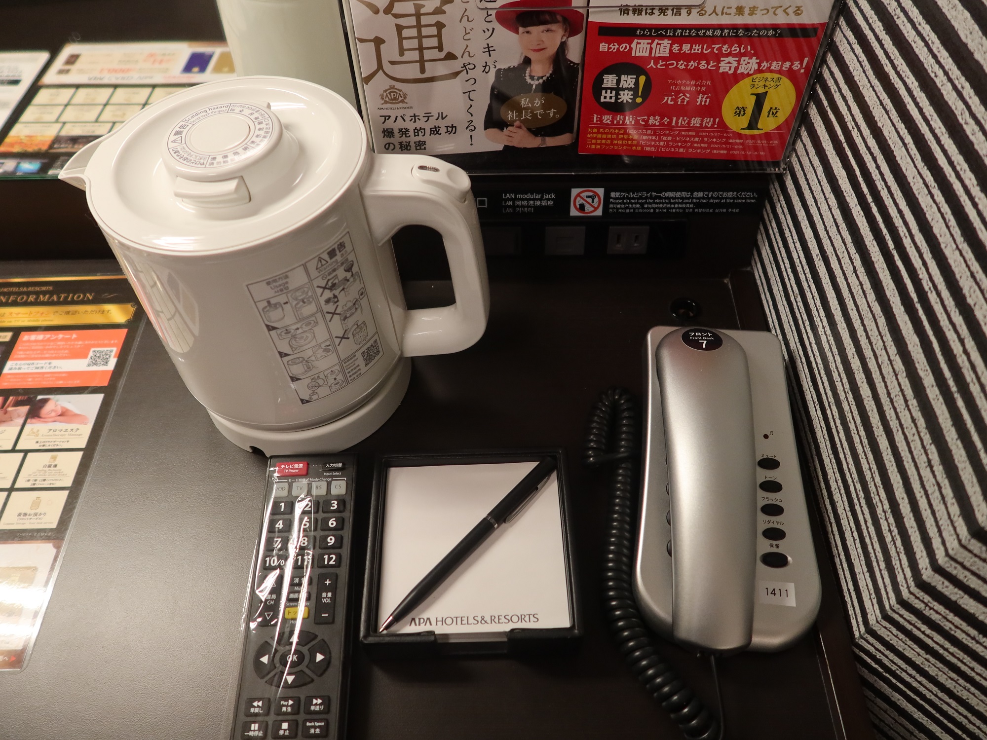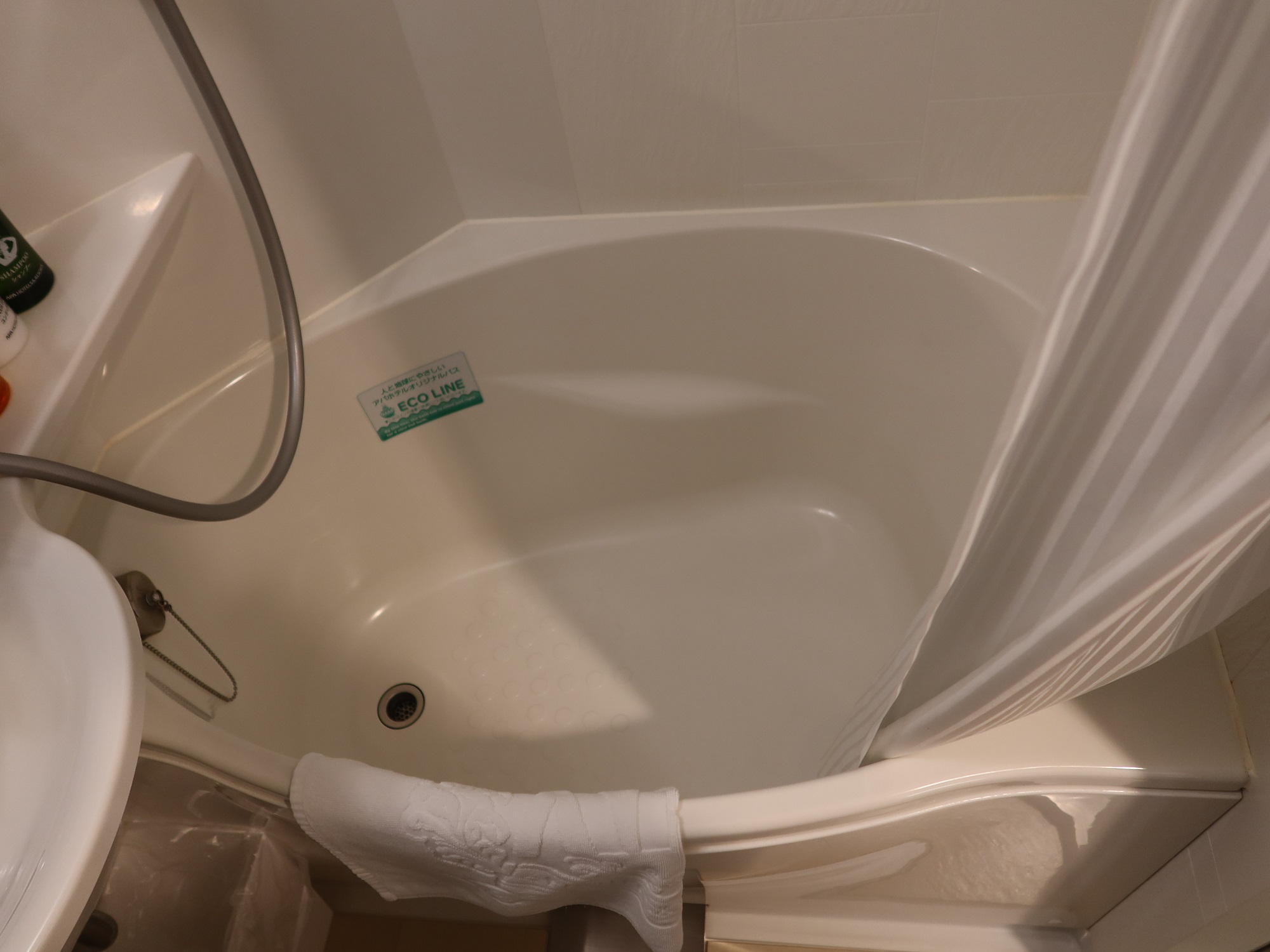 バスタブは、これまた最近のアパホテルでよくある、玉子型のバスタブです。このバスタブ、とてもよくできていると思うのですが、ここには大浴場があるので、あんまり使わなかったりします。