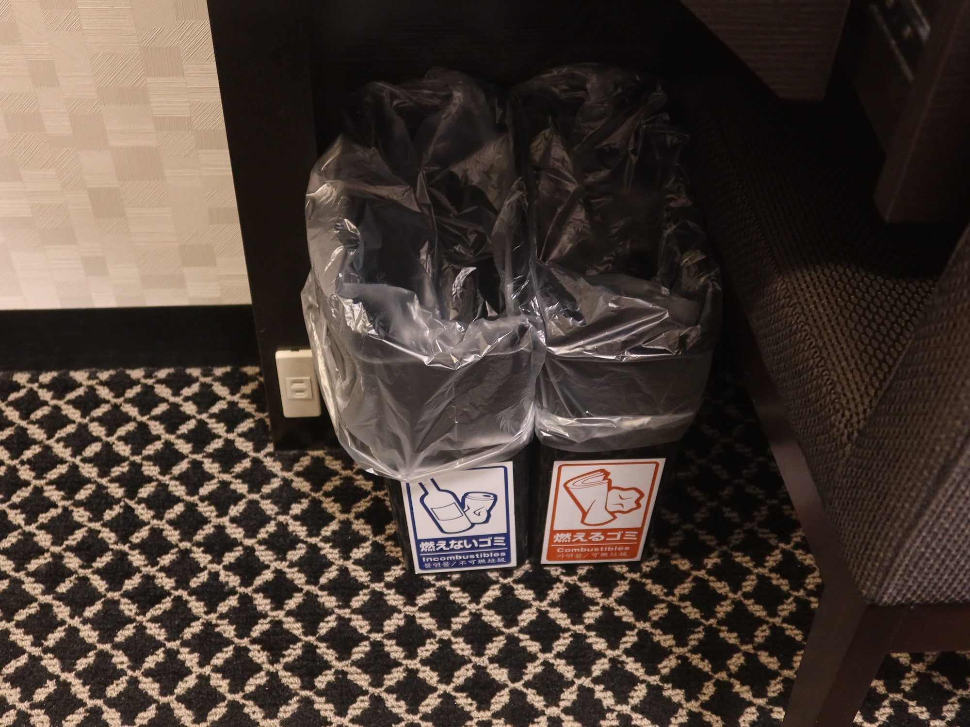 デスクの足元には、ごみ箱とACコンセントがあります。