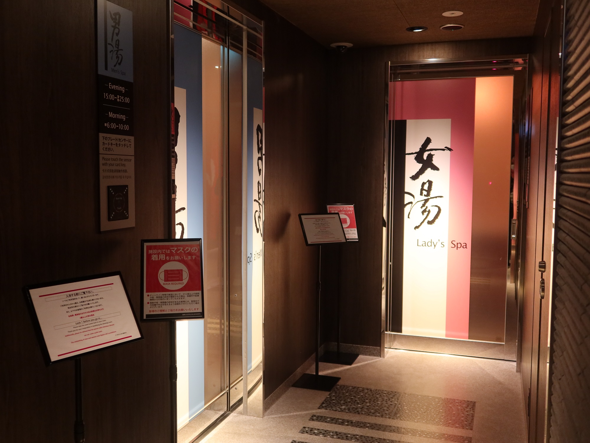 2階にはレストランと大浴場があります。脱衣場にコインランドリーがあります。大浴場は、カードキーをタッチしないと入れません。また、タオルは部屋から持って行きます。