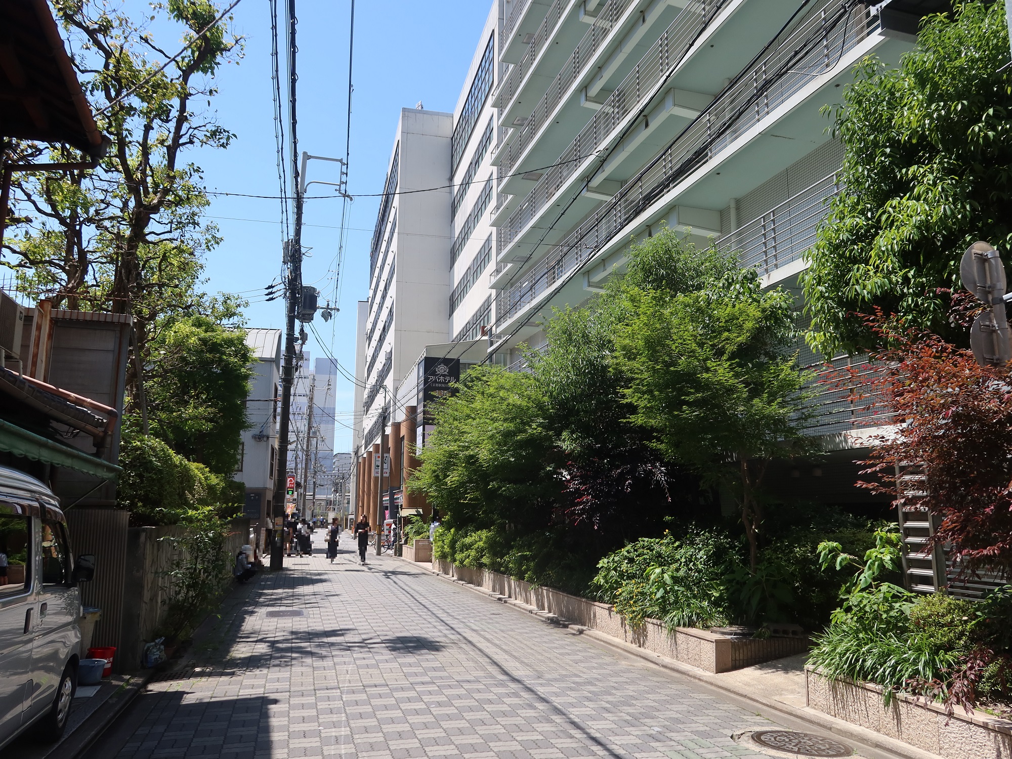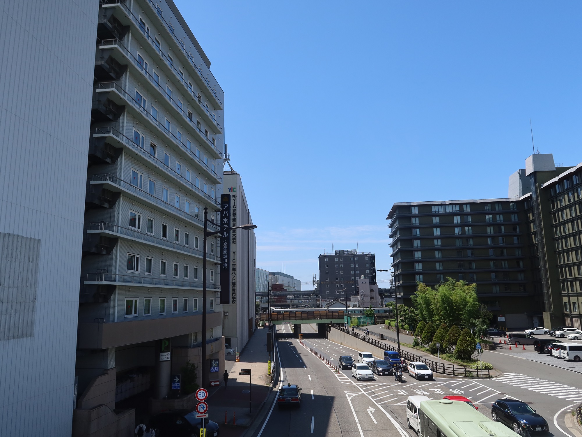 場所は、京都駅の烏丸口(つまり北側の改札口)から歩いて5分少々のところにあります。京都駅周辺にはアパホテルが何件かありますので、間違えないようにご注意ください。
