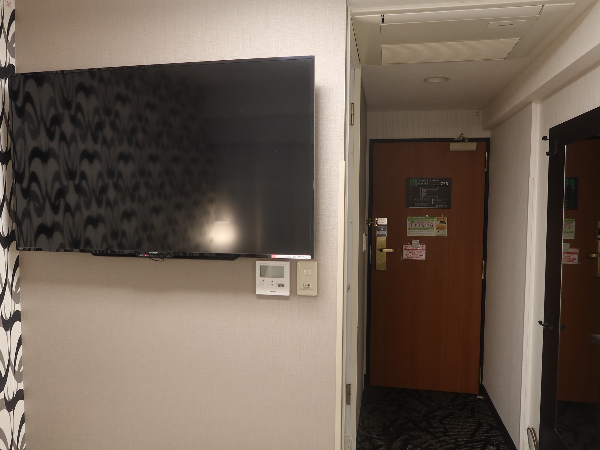 先ほどと逆方向を見ると、こんな感じ。壁に大きな液晶テレビがあります。以前泊まった時はこうなっていなかったので、近年リニューアルをしたみたいです。