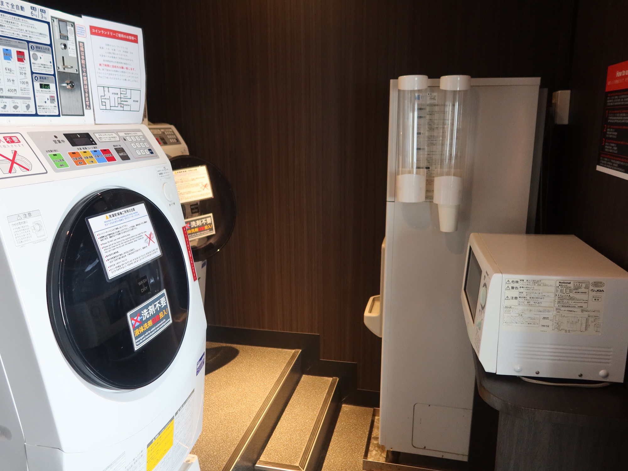 11階の大浴場の隣には、コインランドリーと製氷機、電子レンジがあります。また、偶数階には自動販売機があります。注意点として、自動販売機にはたばことアルコール類の販売はありません。もっとも、お隣のセブンイレブンに行けばいいのですが・・・
