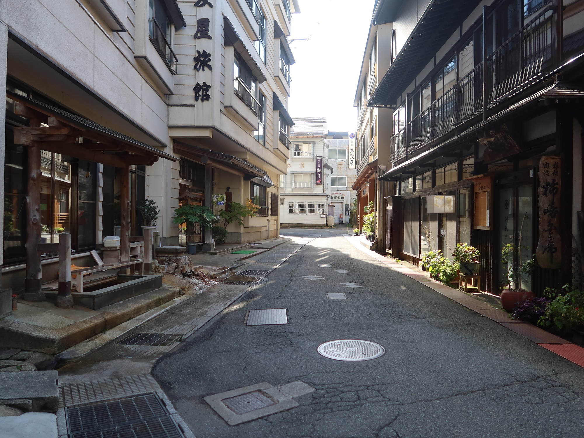 山形 肘折温泉 温泉街 第一停留所付近から旧肘折郵便局方向を撮影