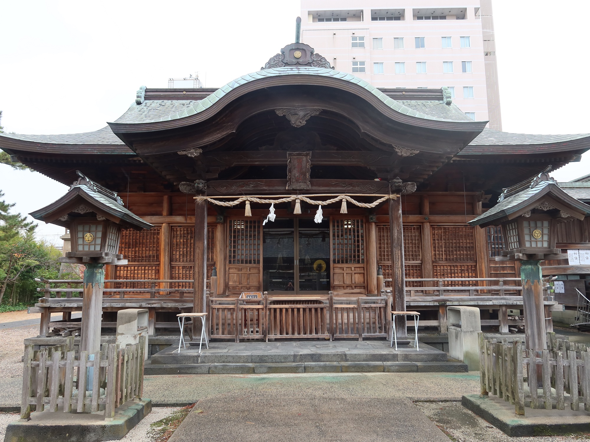 宍道湖大橋の北詰めに、神社があります。須衛都久神社(すえつぐじんじゃ)です。松江しんじ湖温泉駅から歩いて5分、JR松江駅から歩いて15分ぐらいのところにあります。