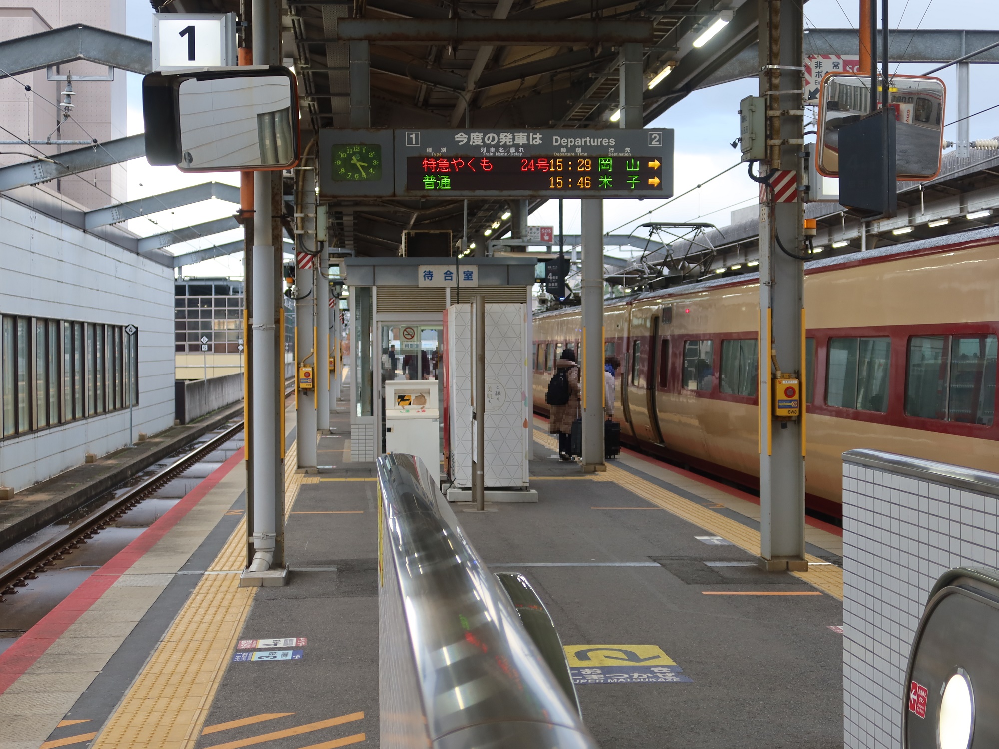 1番線・2番線です。主に松江米子鳥取方面と、伯耆大山から伯備線を経由して倉敷岡山方面に行く列車が発着します。