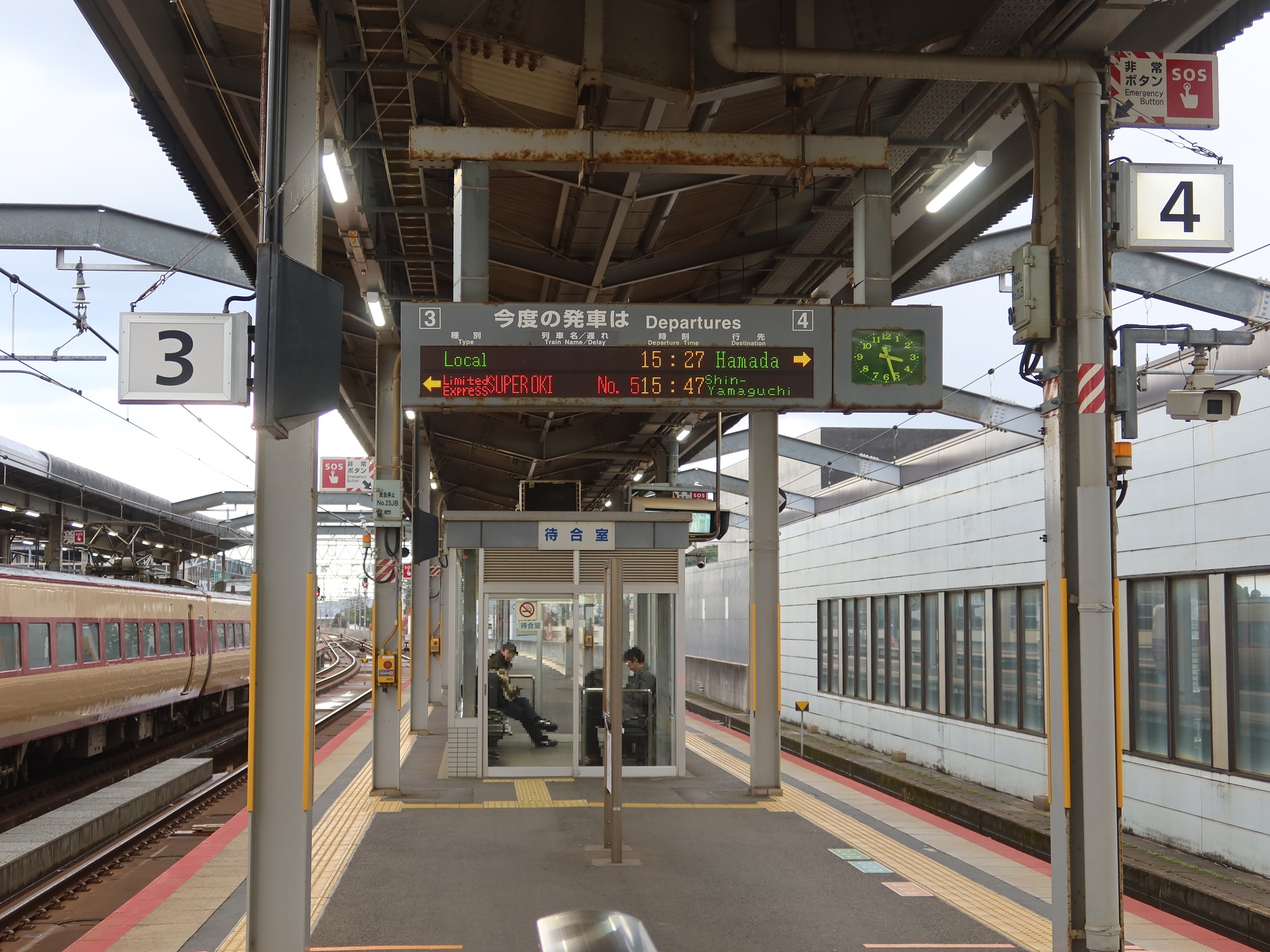 3番線・4番線です。主に浜田方面と、益田から山口線を経由して新山口方面に行く列車が発着します。