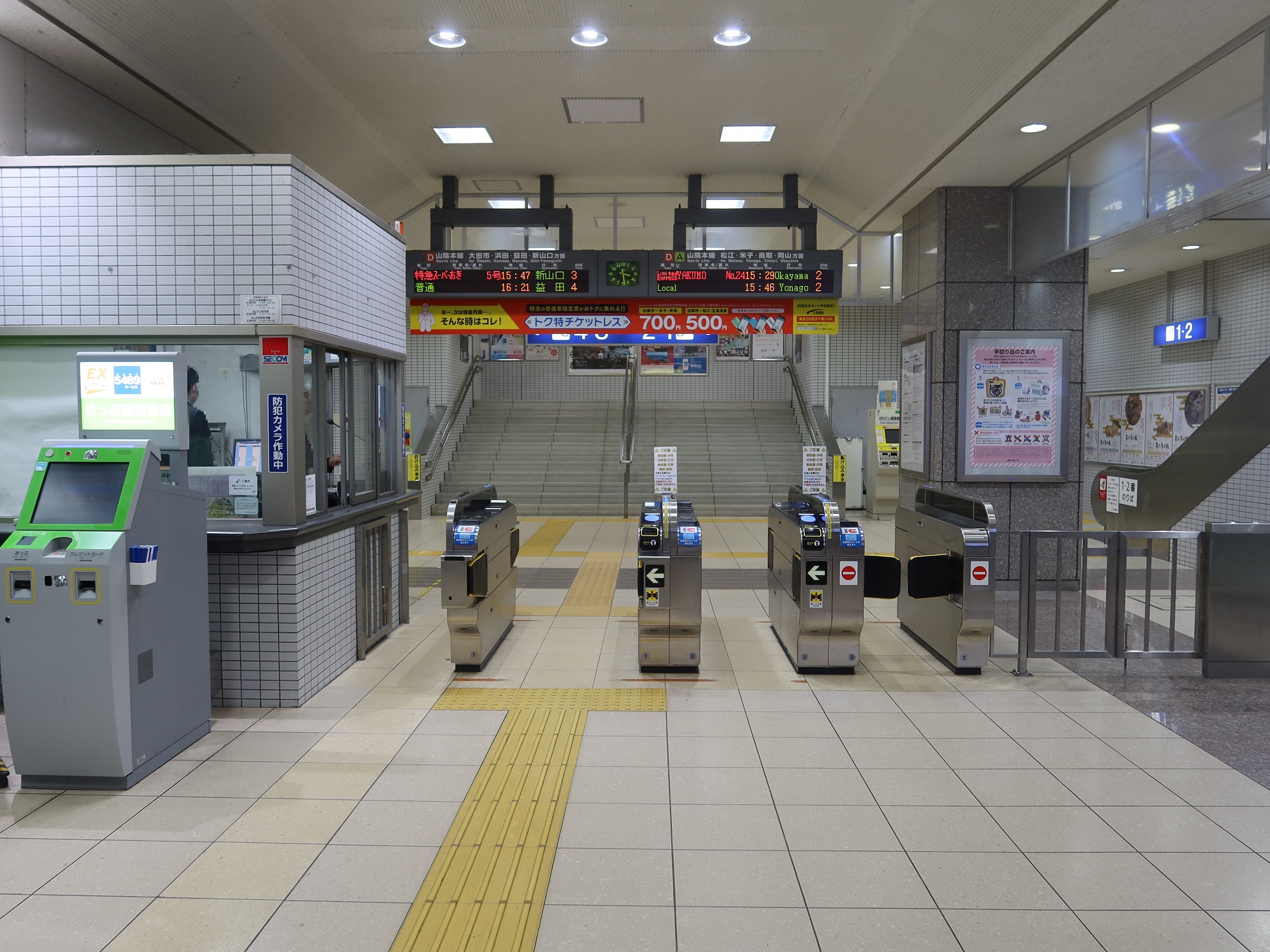 改札口です。ICOCA・Suica・PASMO等の交通系ICカード対応の自動改札機が並びます。