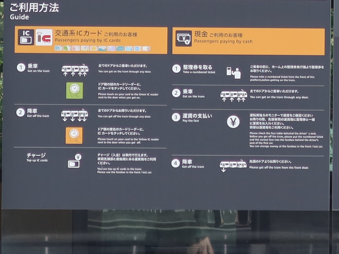宇都宮ライトレールは運賃後払い方式です。運賃は150~400円で、乗った区間によって異なります。各駅には、電車の乗り方が書いてあります。