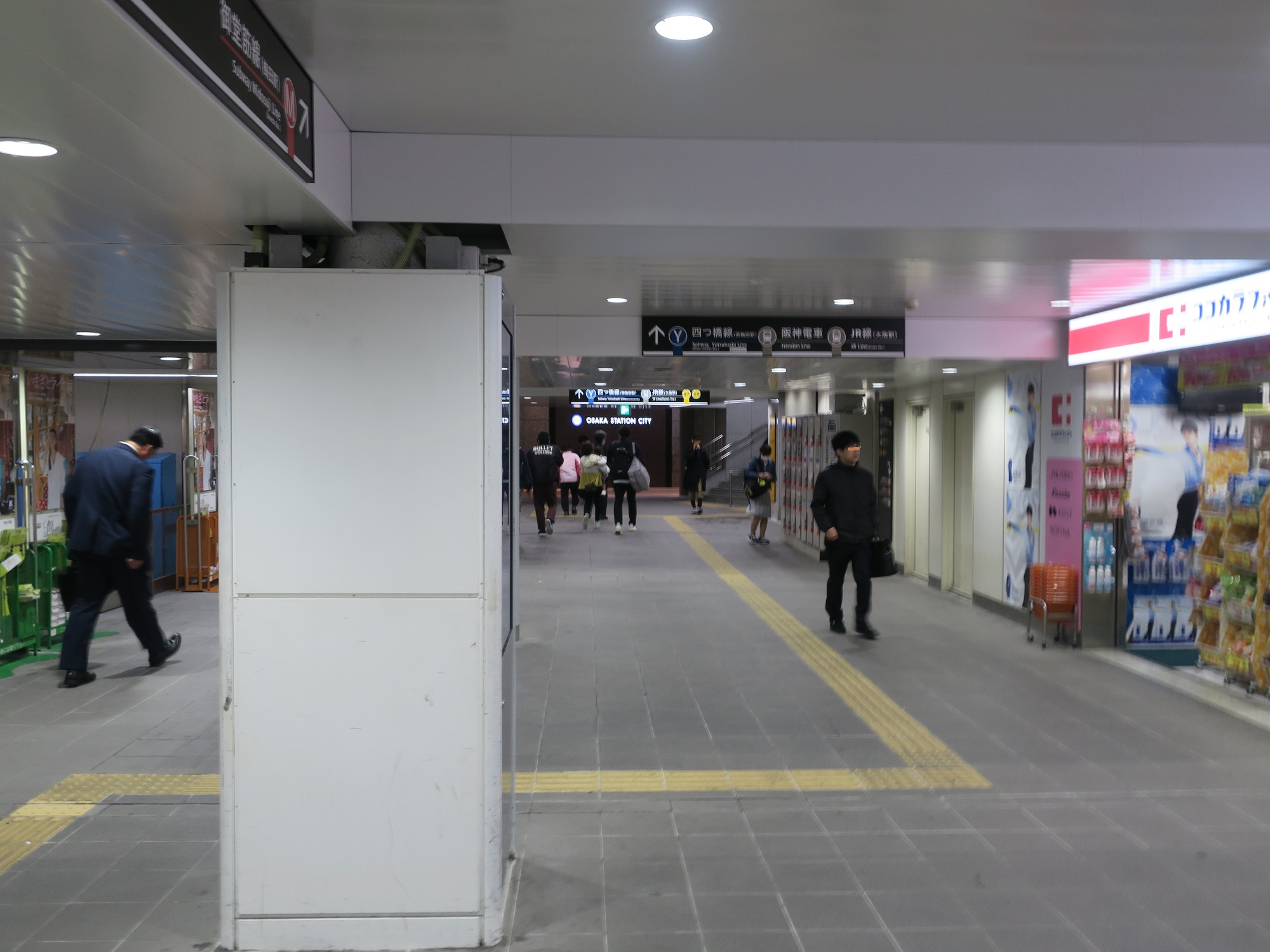 進んだ先に、大阪メトロ(旧:大阪地下鉄)御堂筋線の梅田駅の改札口があります。気にせず、そのまま先に進みます。
