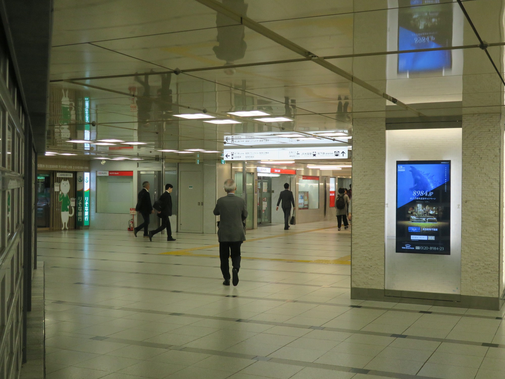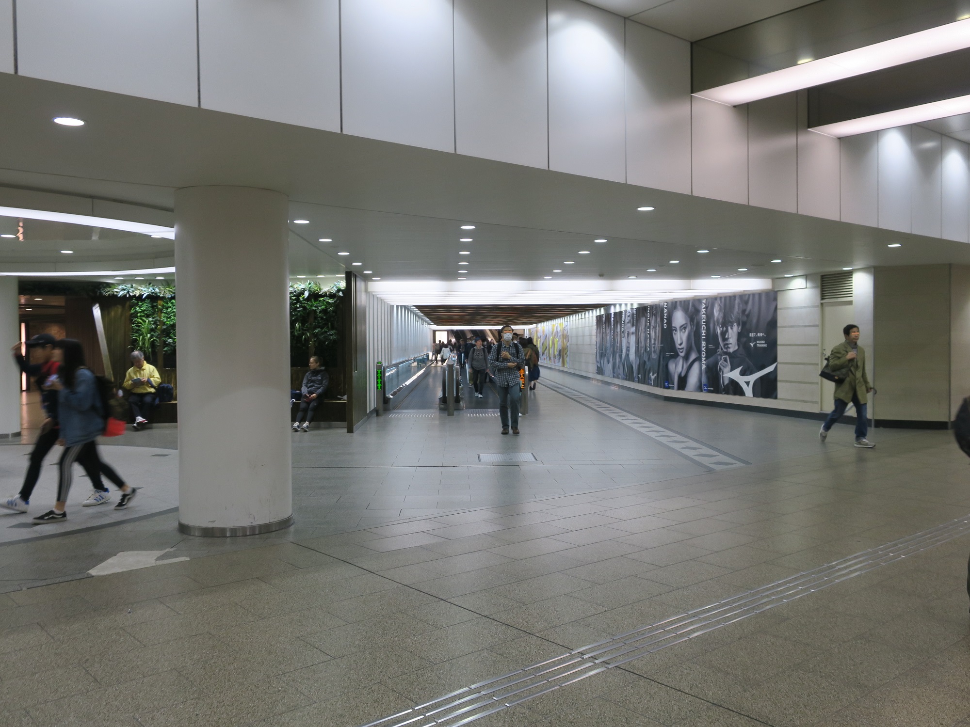 階段・エスカレーターを降りた先が、地下1階です。降りた先を、右に進みます。