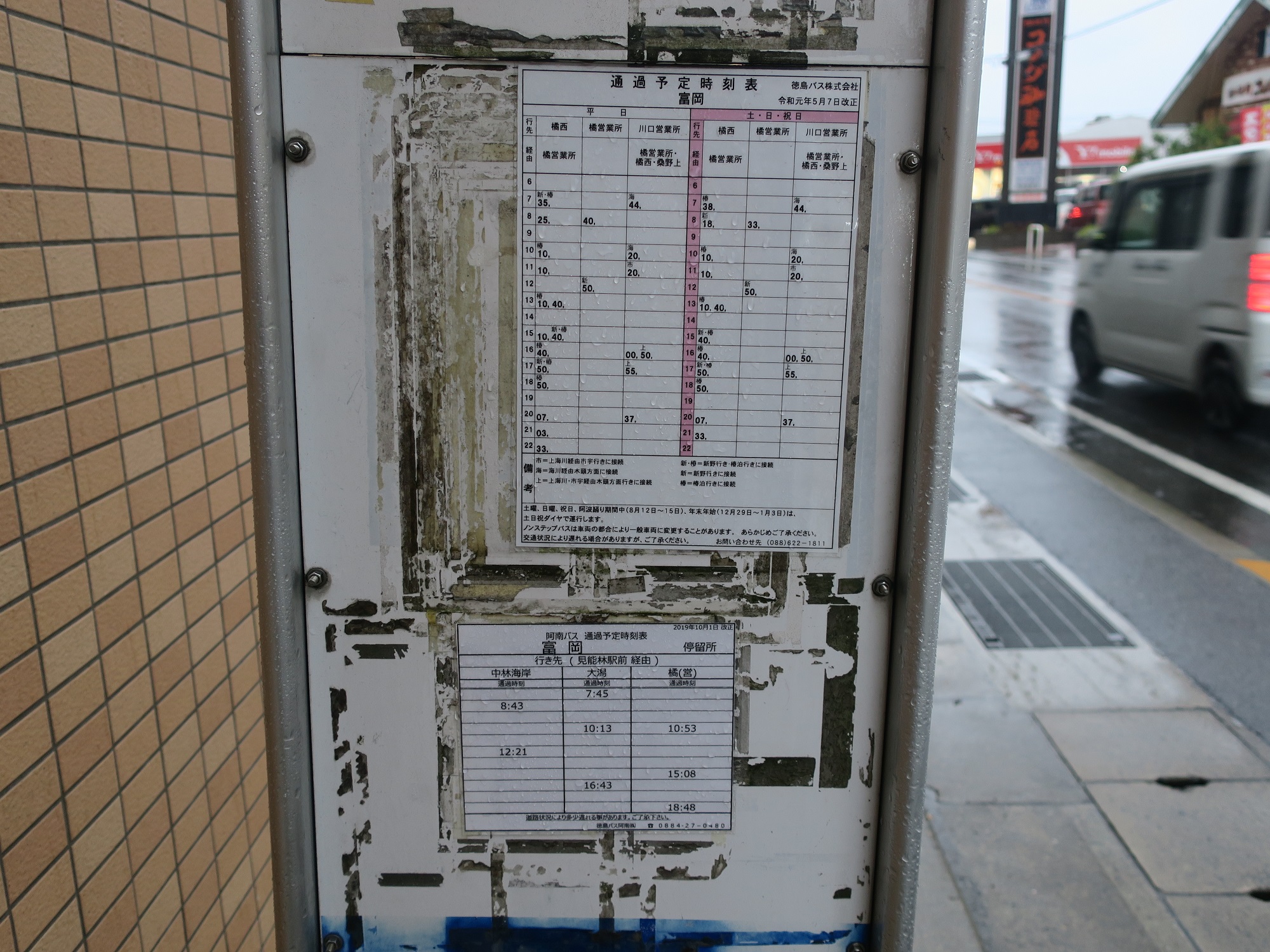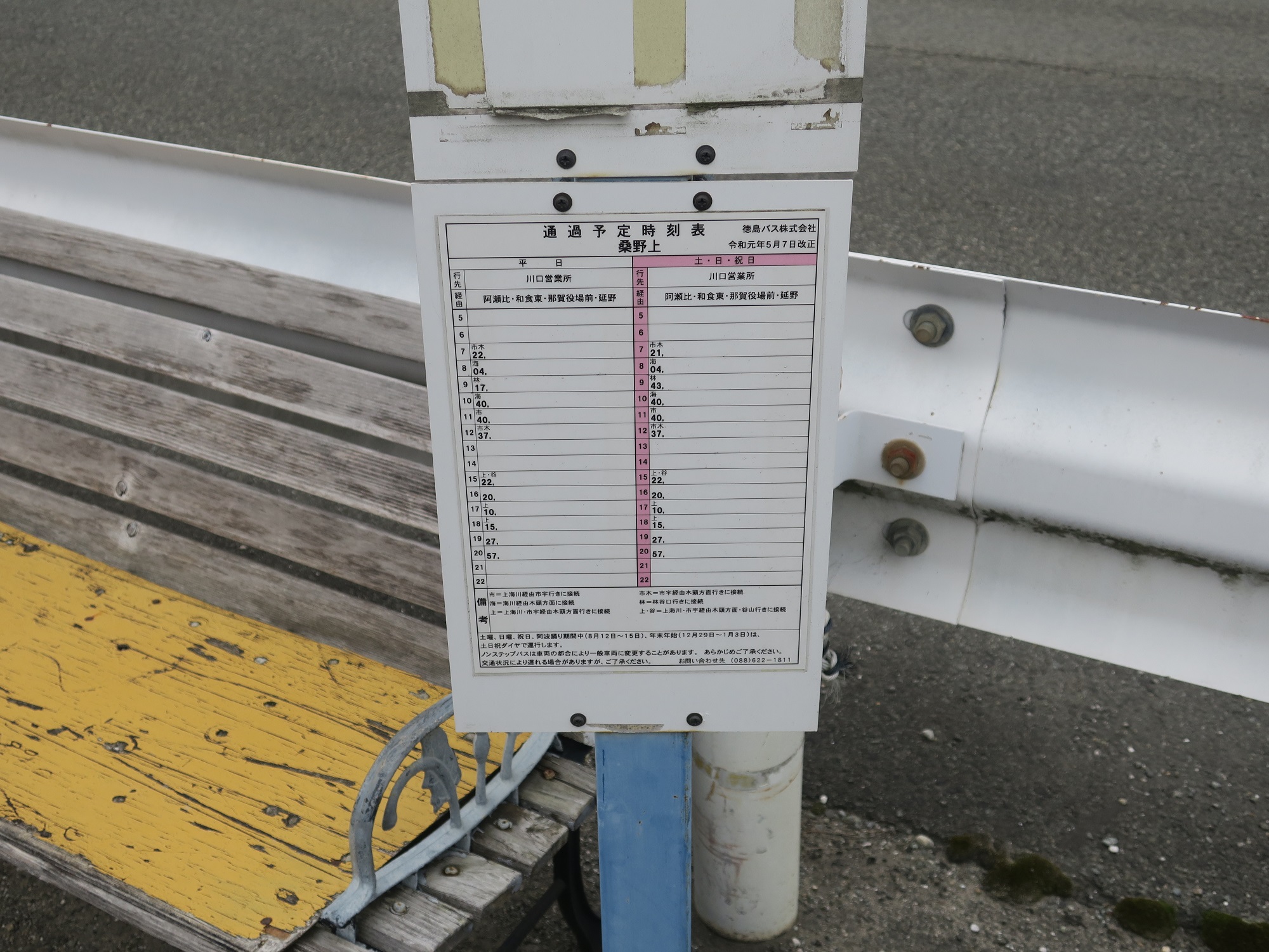 参考までに、桑野上・富岡・徳島駅方面行きのバス通過予定時刻表です。