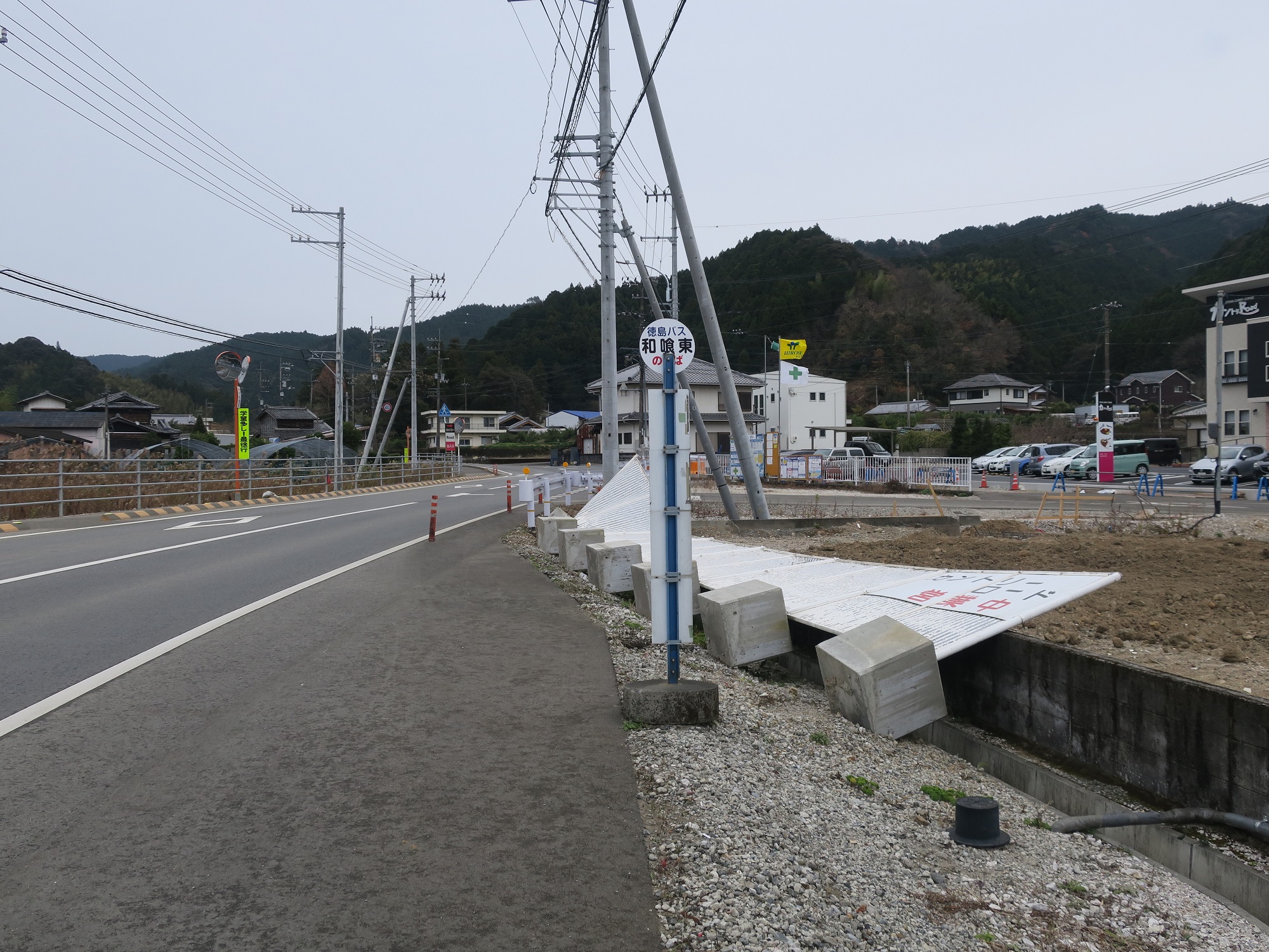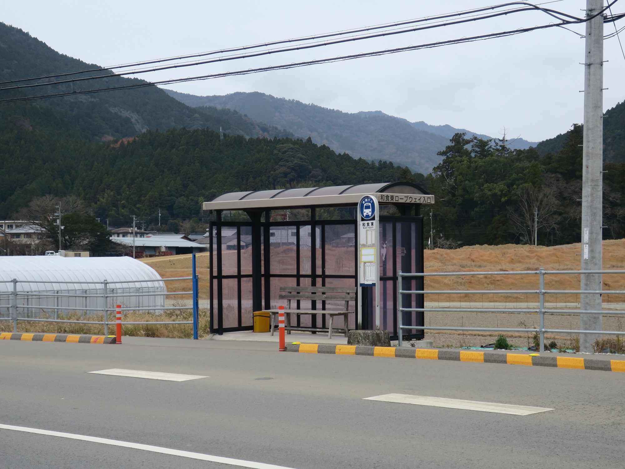 桑野上バス停からはおよそ20分位で、和食東バス停に着きます。沿線は、ここで飲食店を探す旅をやったら地獄を見る感じですね。