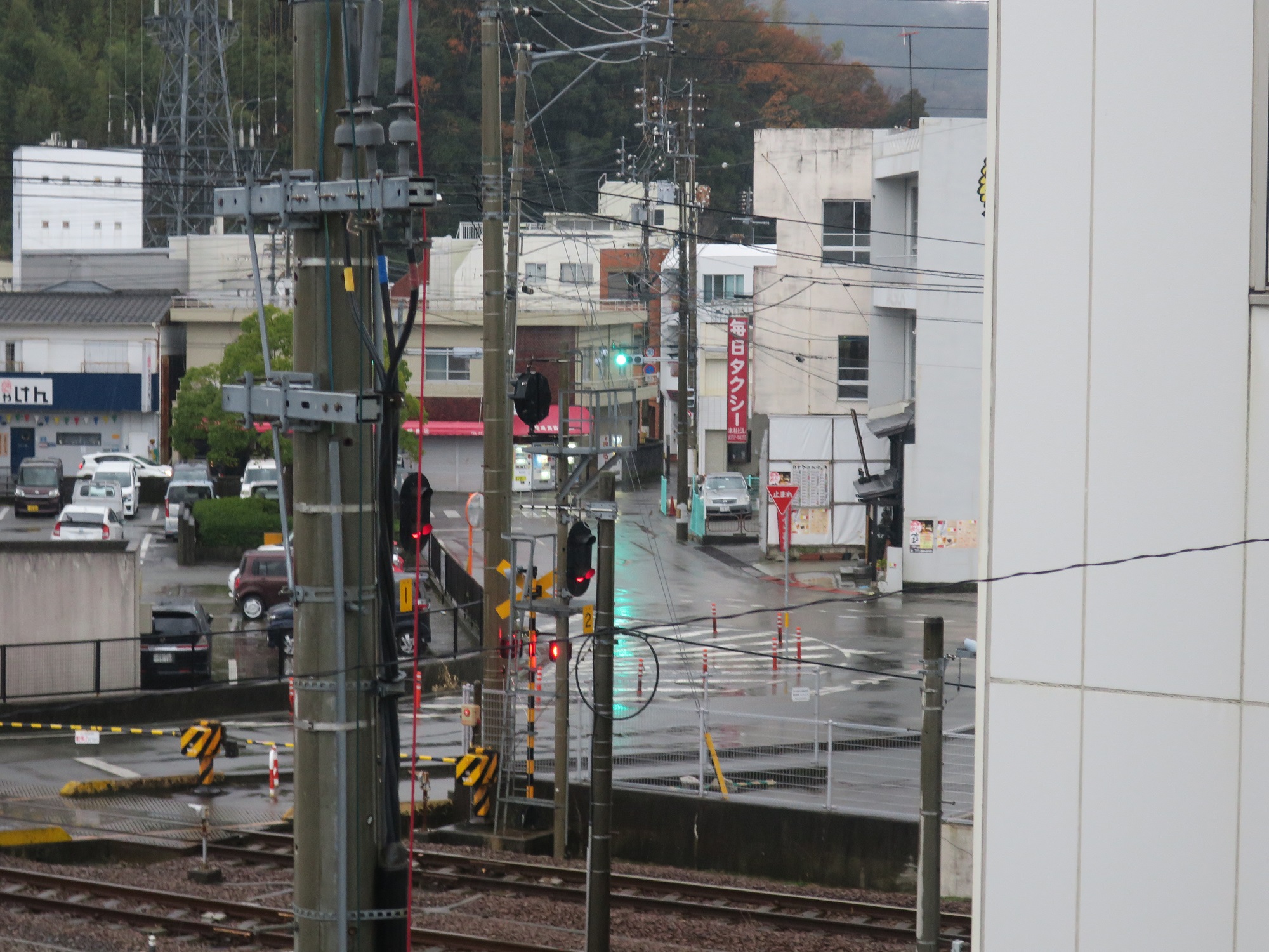駅前の光景はご覧の通り。タクシーの営業所こそあれど、バス停は見当たりません。