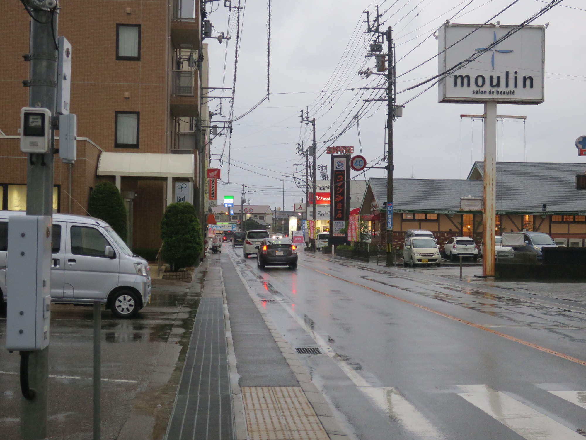 左折するとこんな感じ。富岡バス停は、コメダ珈琲店の近くにあります。